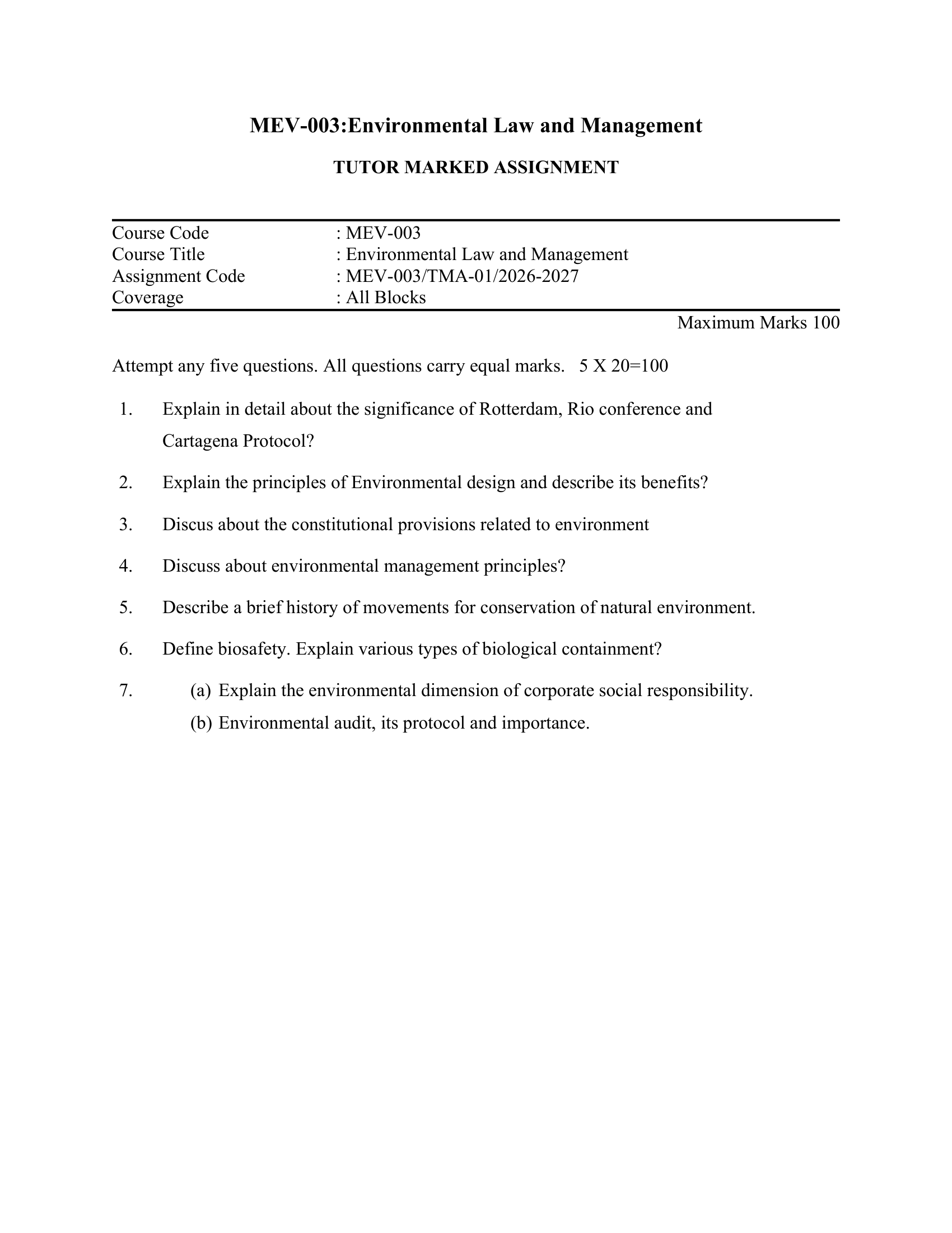 IGNOU MEV-003 SOLVED ASSIGNMENT JAN-JULY 2026 ENGLISH MEDIUM