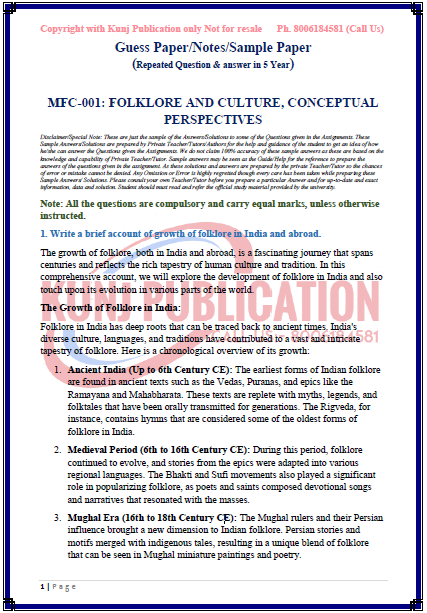 IGNOU MFC-001 SOLVED GUESS PAPER/NOTES/SAMPLE PAPER ENGLISH MEDIUM
