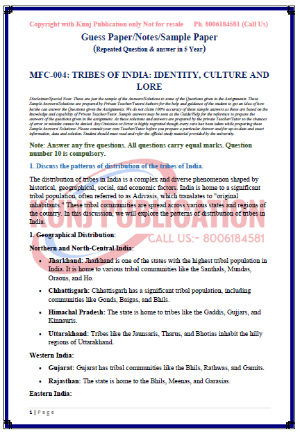 IGNOU MFC-004 SOLVED GUESS PAPER/NOTES/SAMPLE PAPER ENGLISH MEDIUM