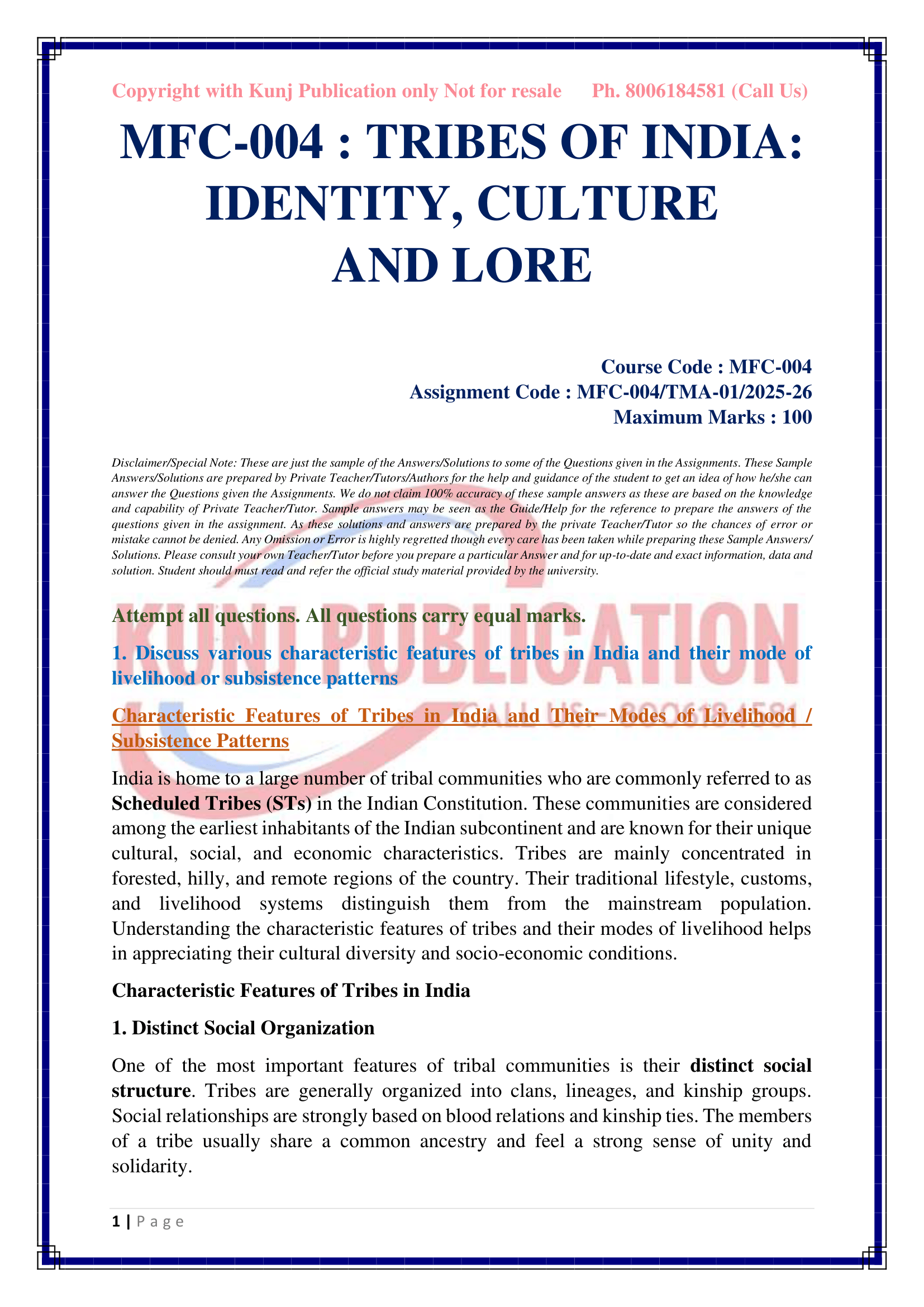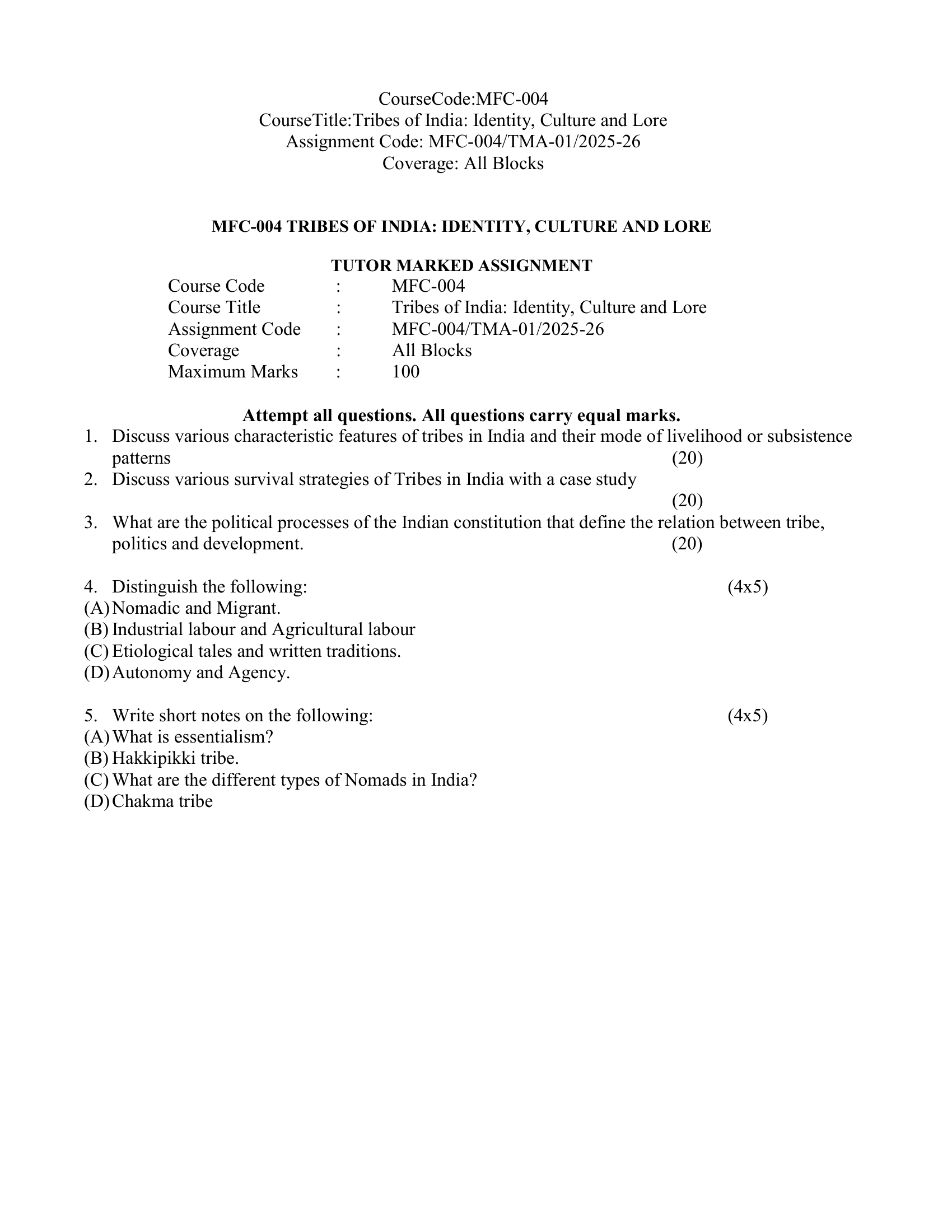 IGNOU MFC-004 SOLVED ASSIGNMENT 2025-26 ENGLISH MEDIUM