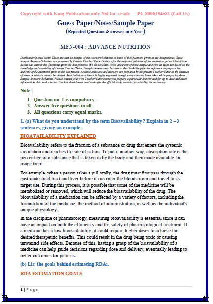 IGNOU MFN-004 SOLVED GUESS PAPER/NOTES/SAMPLE PAPER ENGLISH MEDIUM