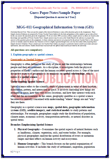 IGNOU MGG-011 SOLVED GUESS PAPER/NOTES/SAMPLE PAPER ENGLISH MEDIUM