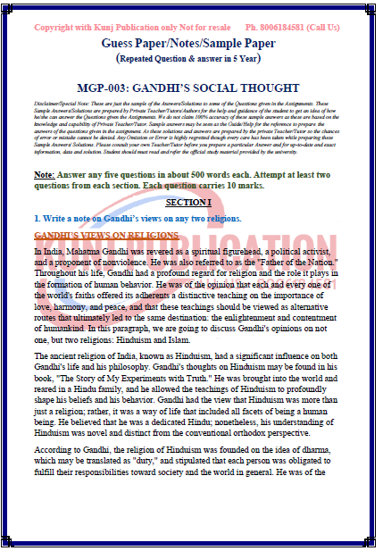 SERVICE TYPE | IGNOU Solved Guess paper/Notes/Sample Paper (Soft Copy/PDF) |