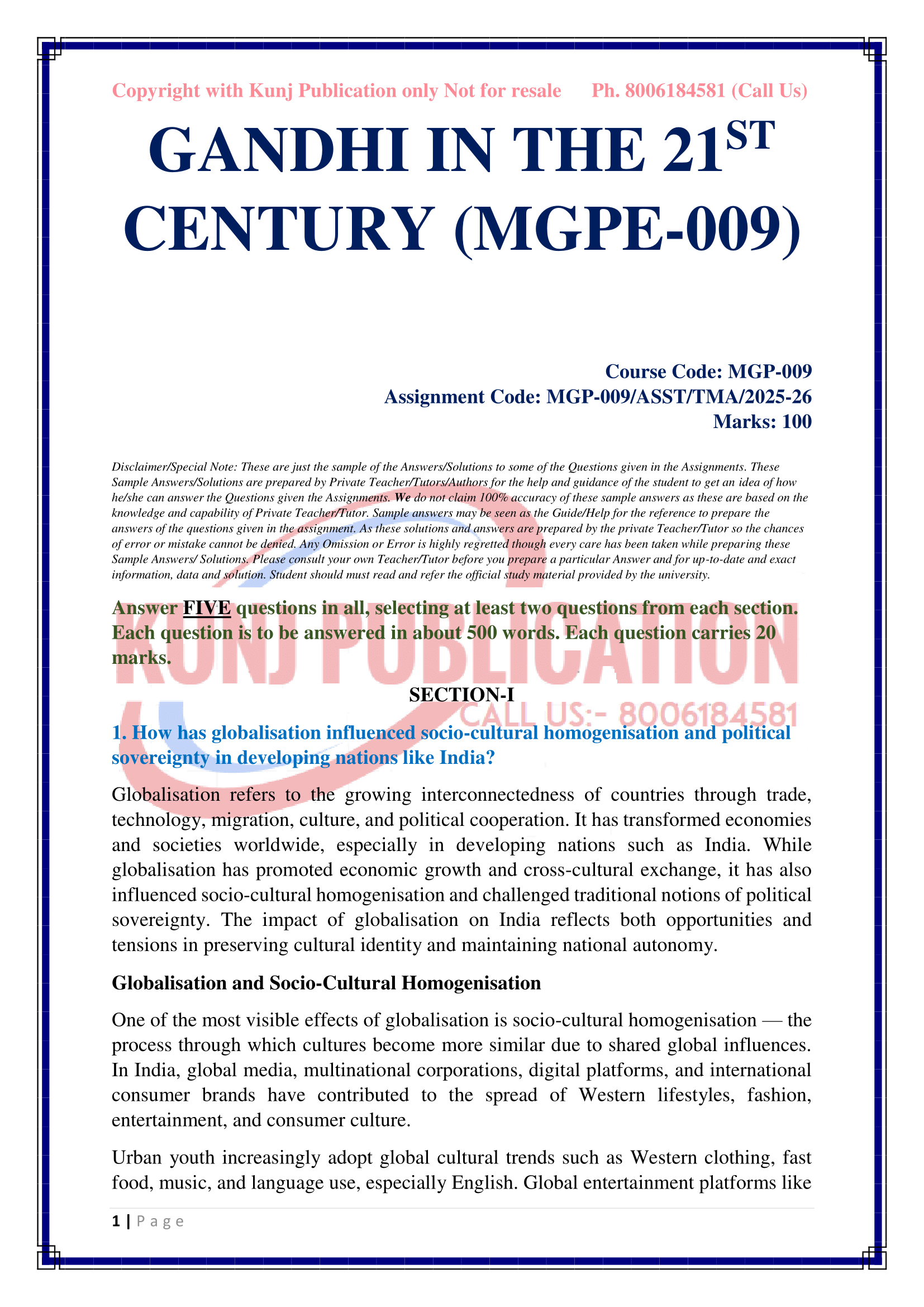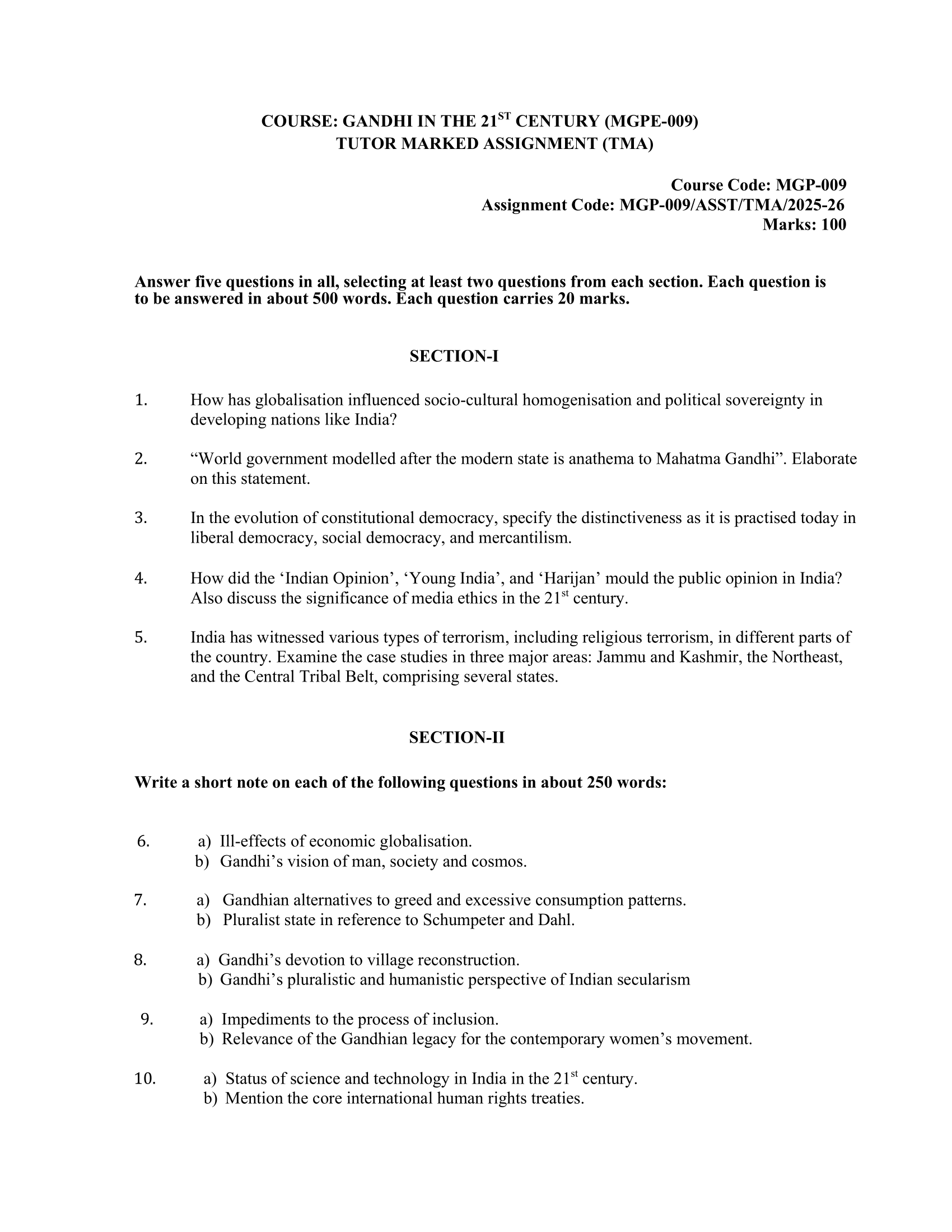 IGNOU MGPE-009 SOLVED ASSIGNMENT 2025-26 ENGLISH MEDIUM