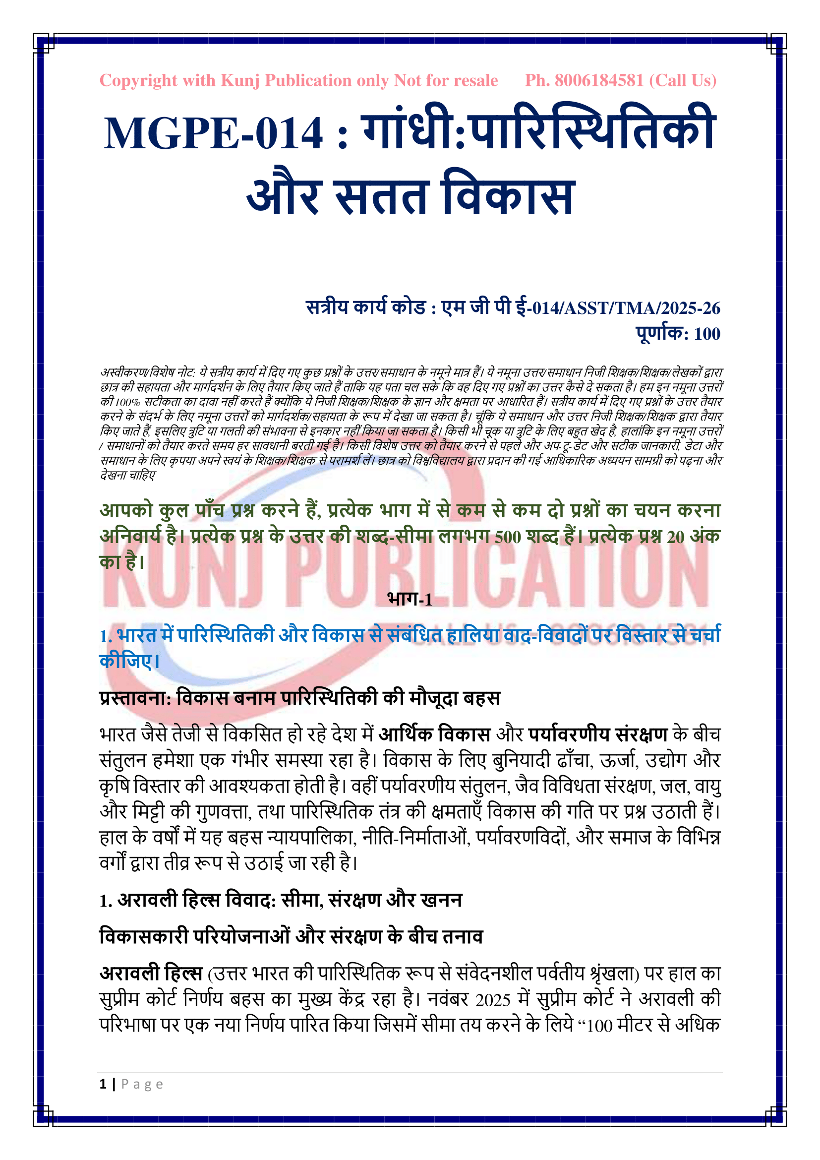 IGNOU MGPE-014 SOLVED ASSIGNMENT 2025-26 HINDI MEDIUM
