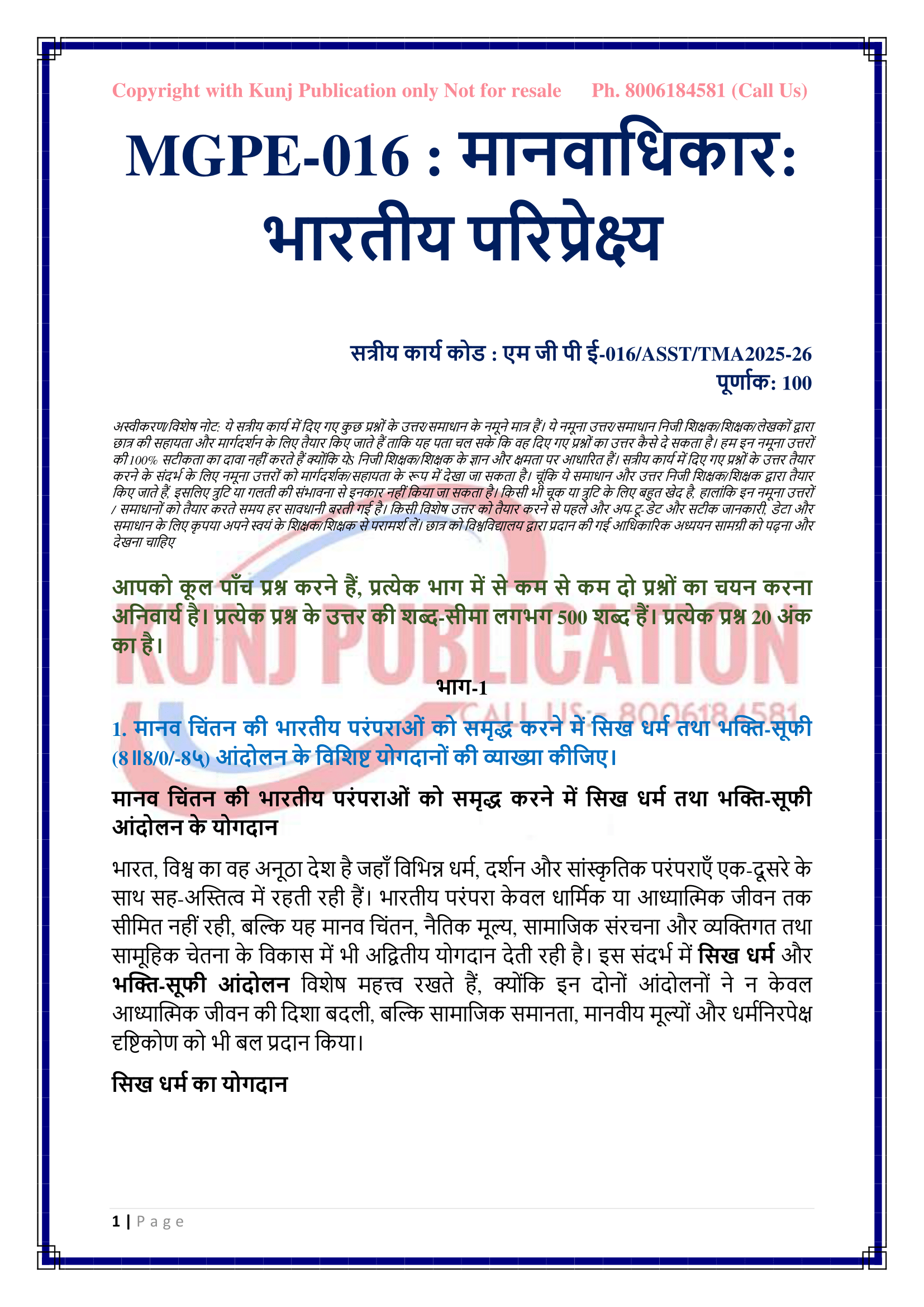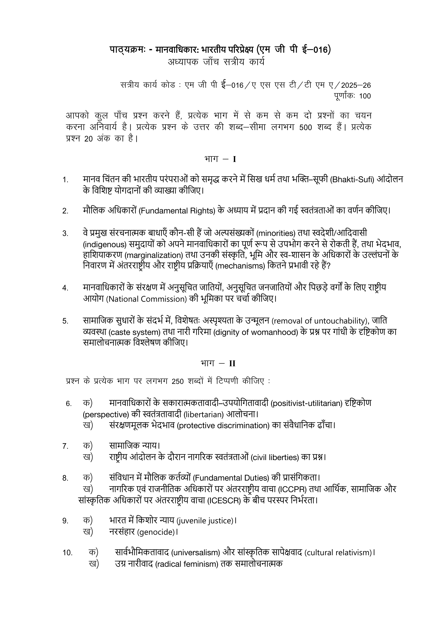 IGNOU MGPE-016 SOLVED ASSIGNMENT 2025-26 HINDI MEDIUM