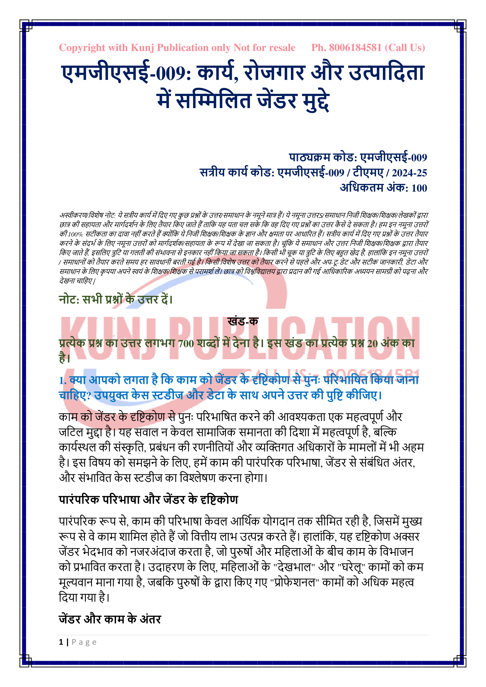 IGNOU MGSE-009 SOLVED ASSIGNMENT 2024-25 HINDI MEDIUM