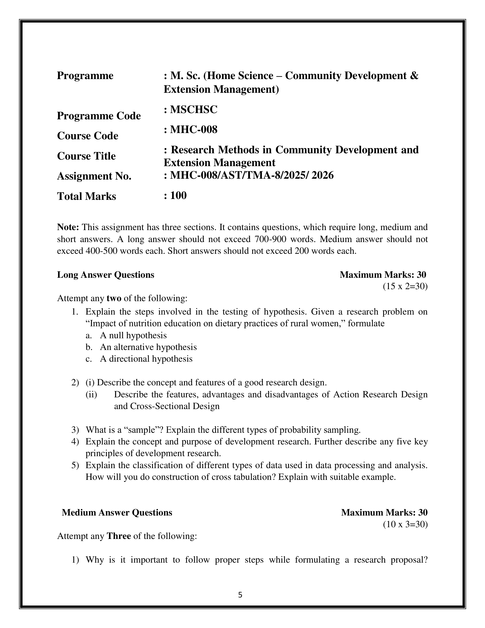 | Course | M. Sc. (Home Science – Community Development & Extension Management) (MSCHSC) |
