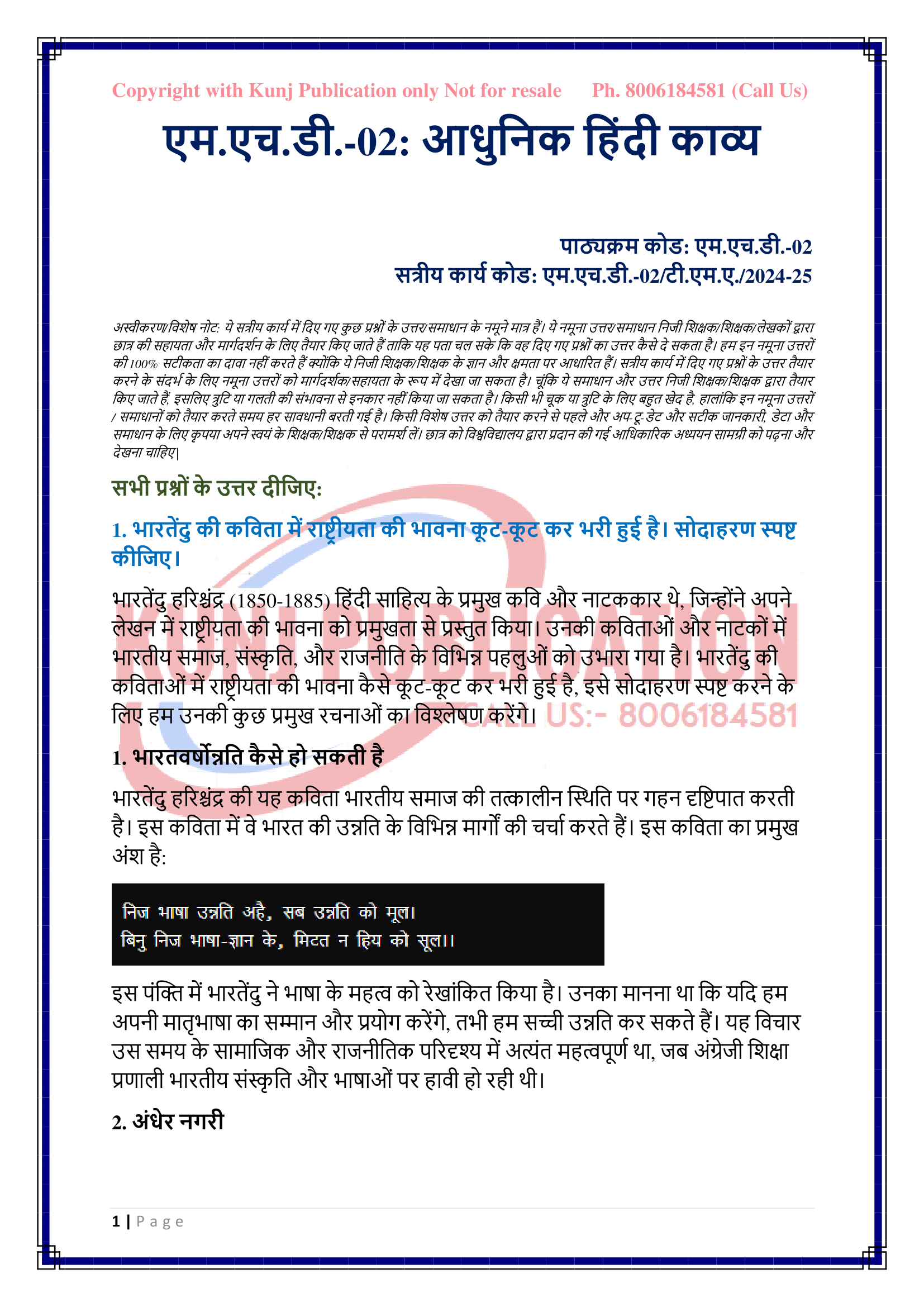 IGNOU MHD-02 SOLVED ASSIGNMENT 2024-25 HINDI MEDIUM