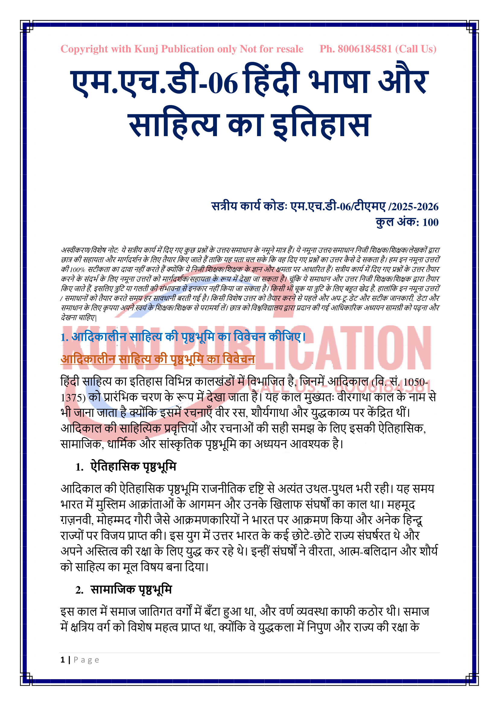 IGNOU MHD-06 SOLVED ASSIGNMENT 2025-26 HINDI MEDIUM