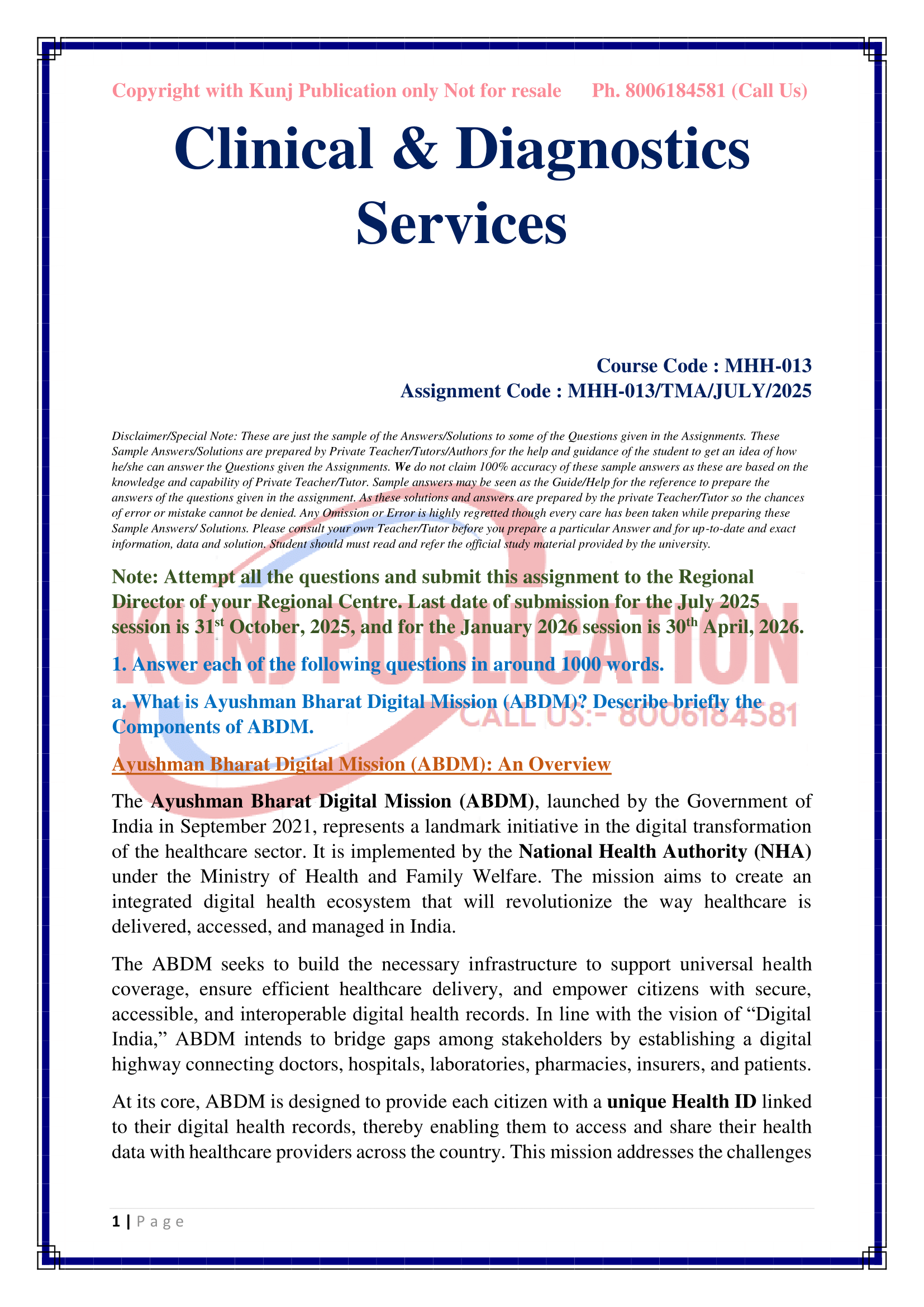 IGNOU MHH-013 SOLVED ASSIGNMENT 2025-26 ENGLISH MEDIUM