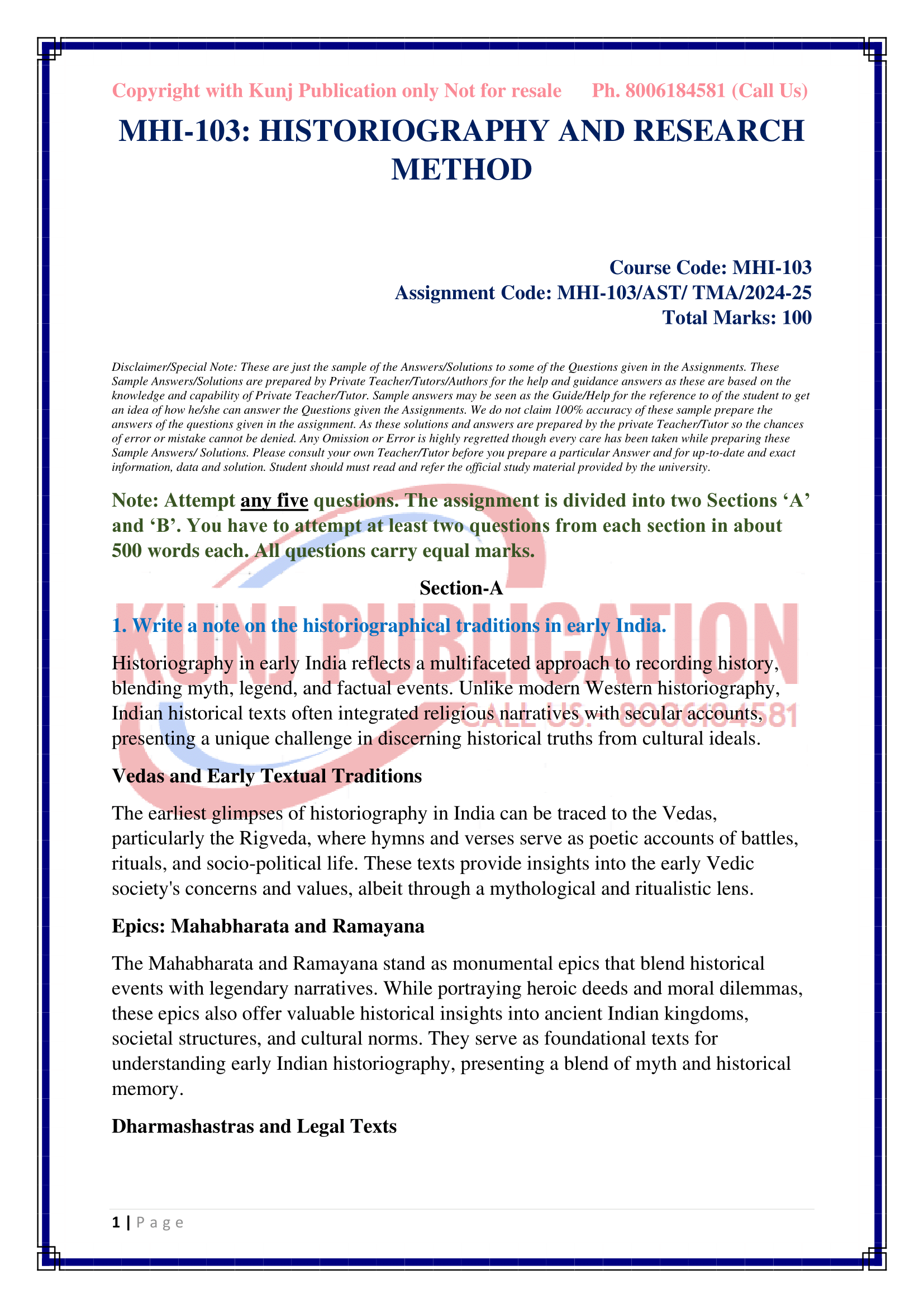IGNOU MHI-103 SOLVED ASSIGNMENT 2024-25 ENGLISH MEDIUM