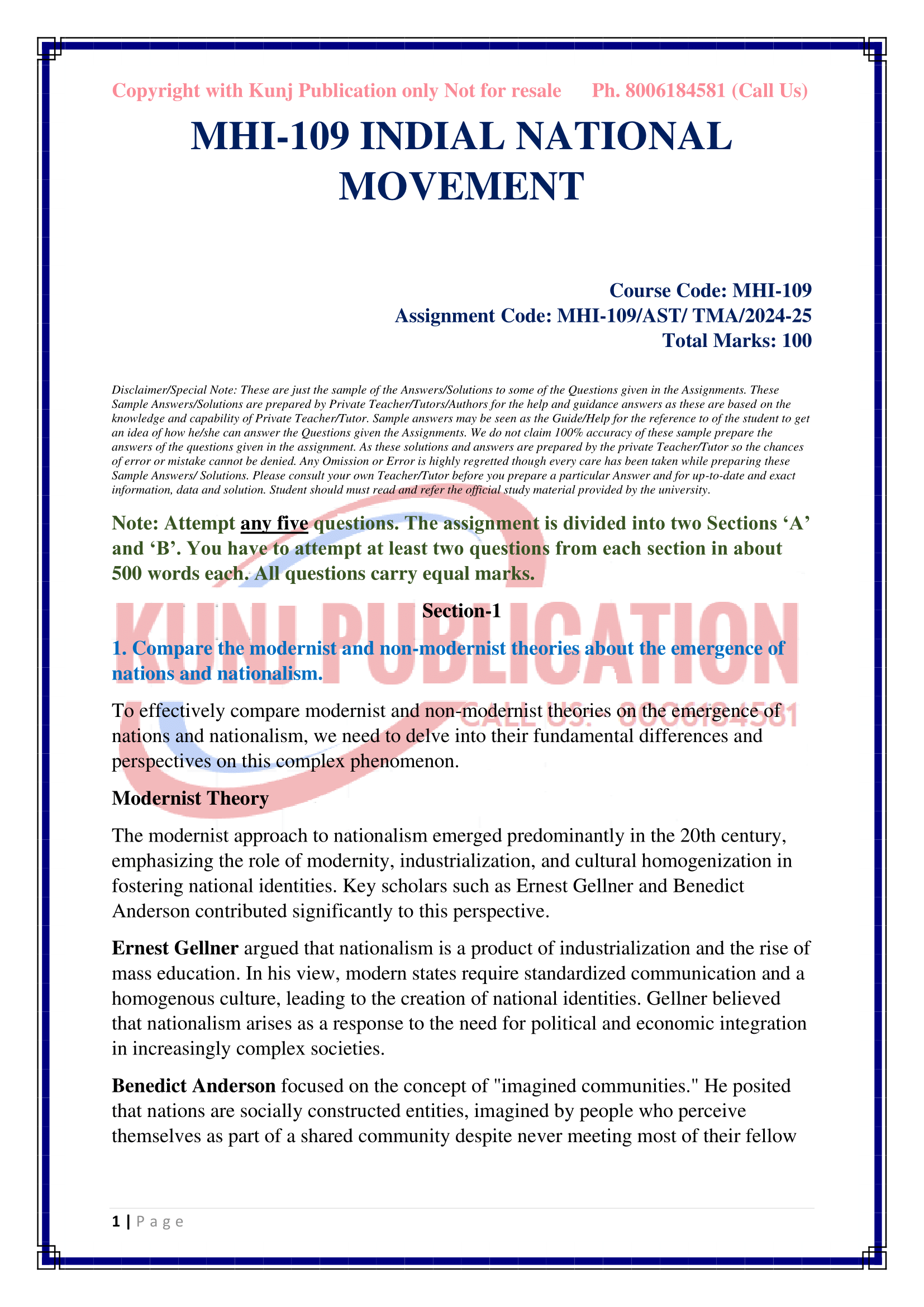 IGNOU MHI-109 SOLVED ASSIGNMENT 2024-25 ENGLISH MEDIUM