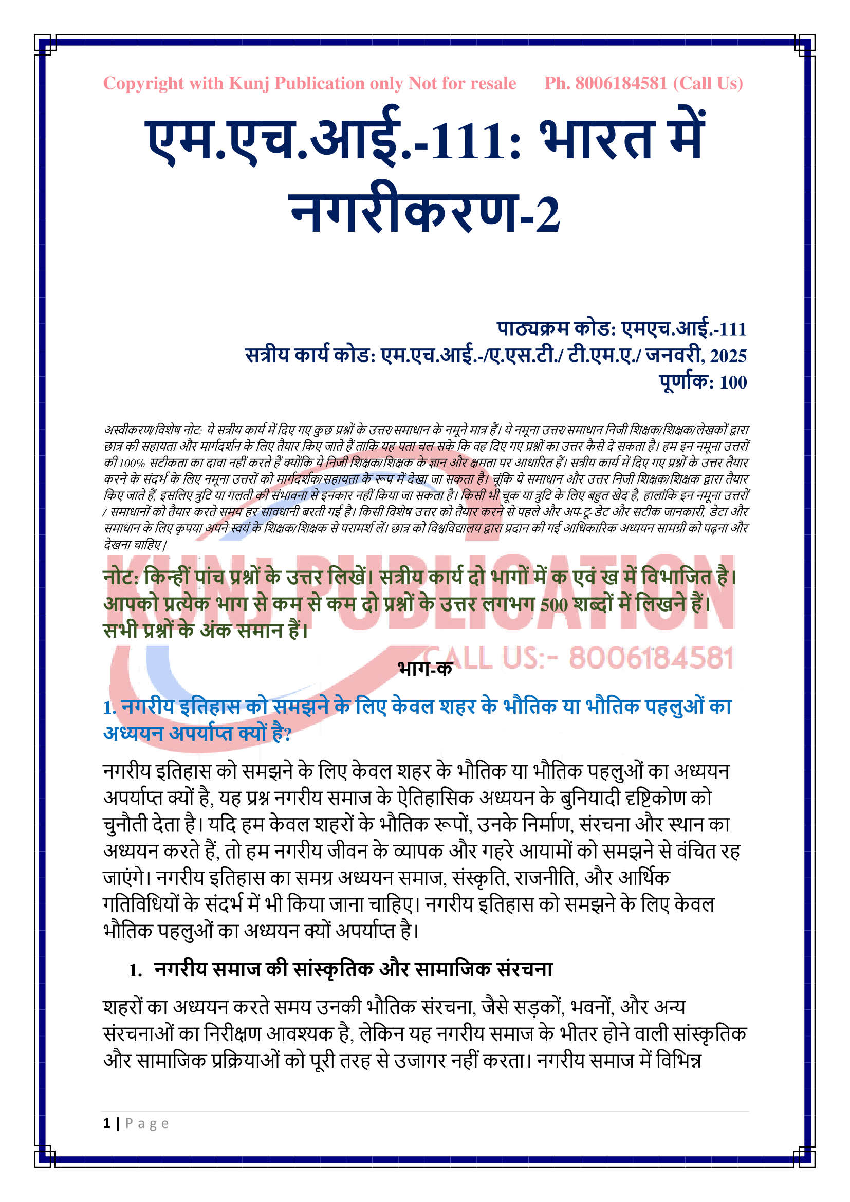 IGNOU MHI-111 SOLVED ASSIGNMENT JANUARY 2025 HINDI MEDIUM