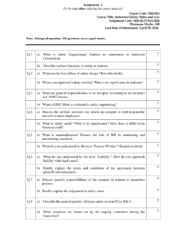 Course MASTER OF SCIENCE (INDUSTRIAL SAFETY) (MSCIDS)