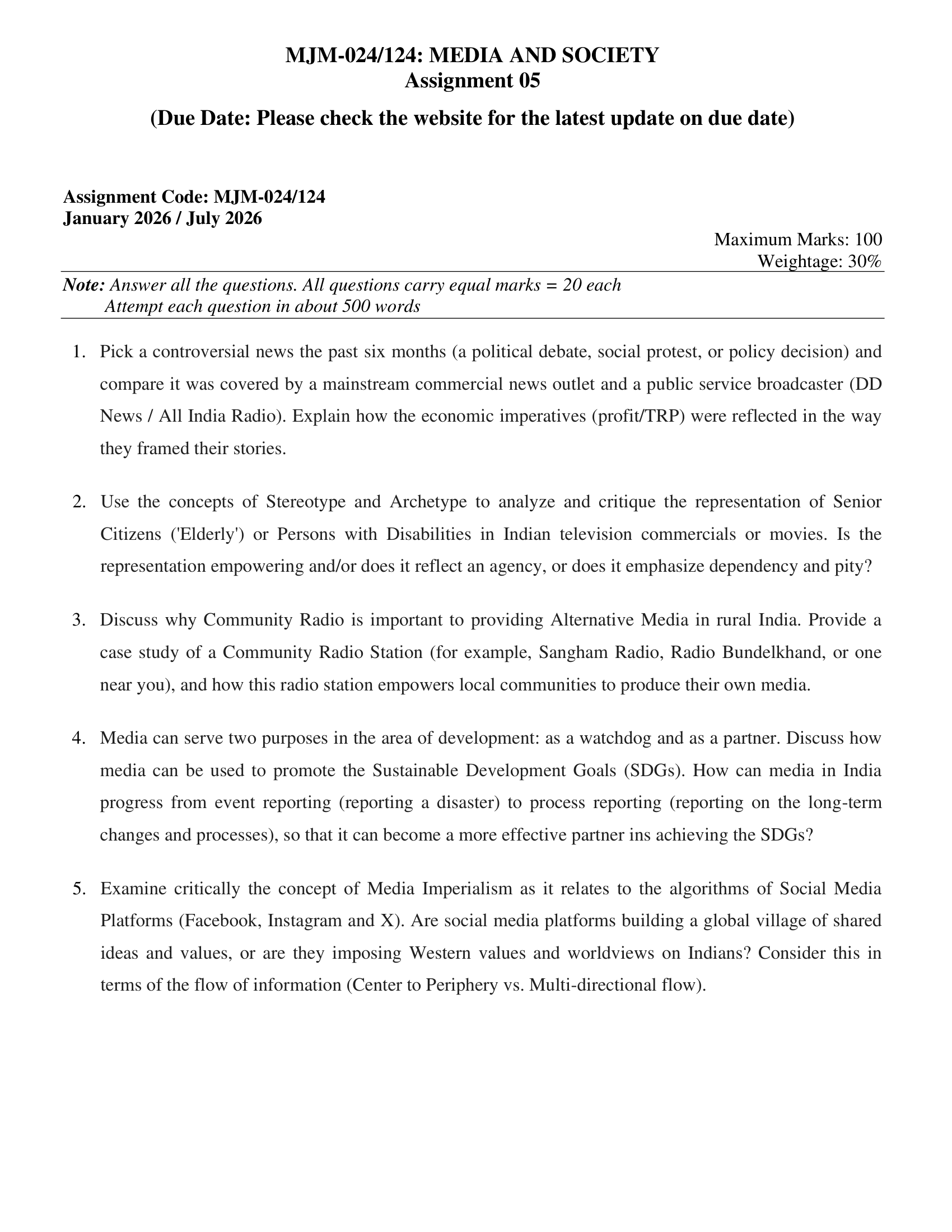 IGNOU MJM-024 SOLVED ASSIGNMENT JAN 2026 – JULY 2026 ENGLISH MEDIUM