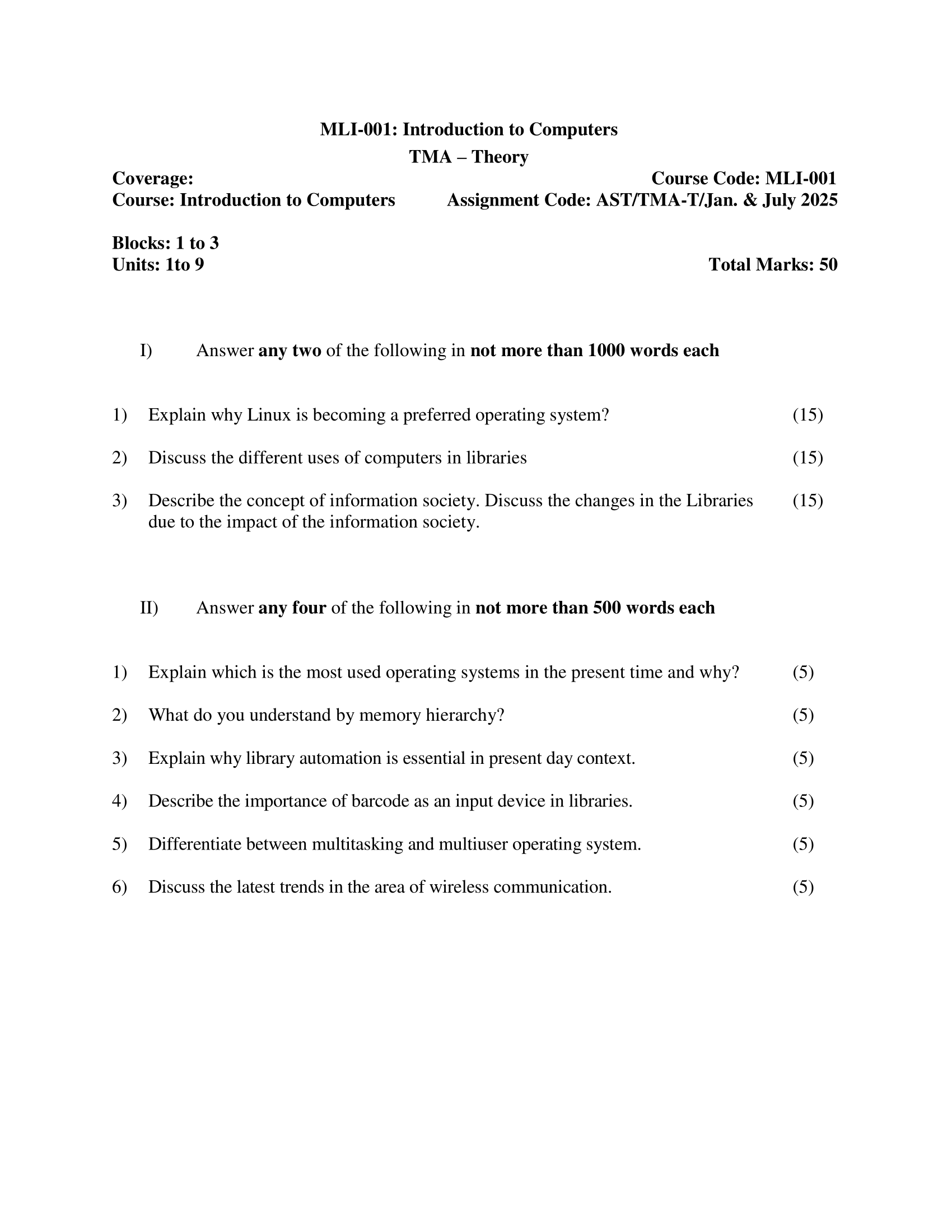 IGNOU MLI-001 SOLVED ASSIGNMENT 2025 ENGLISH MEDIUM