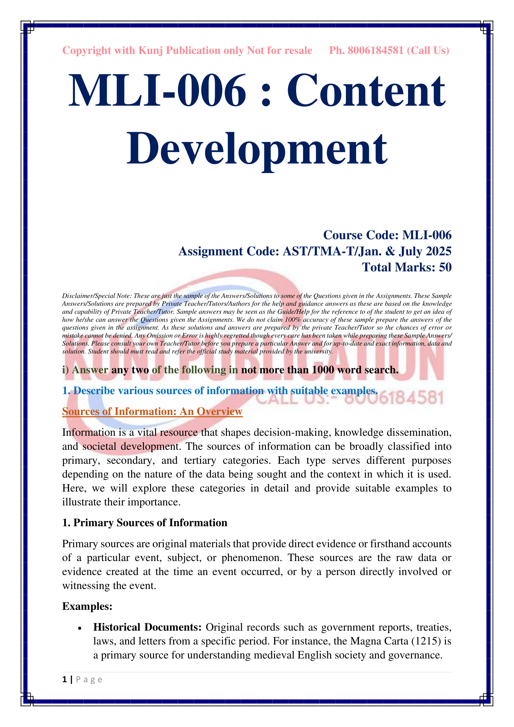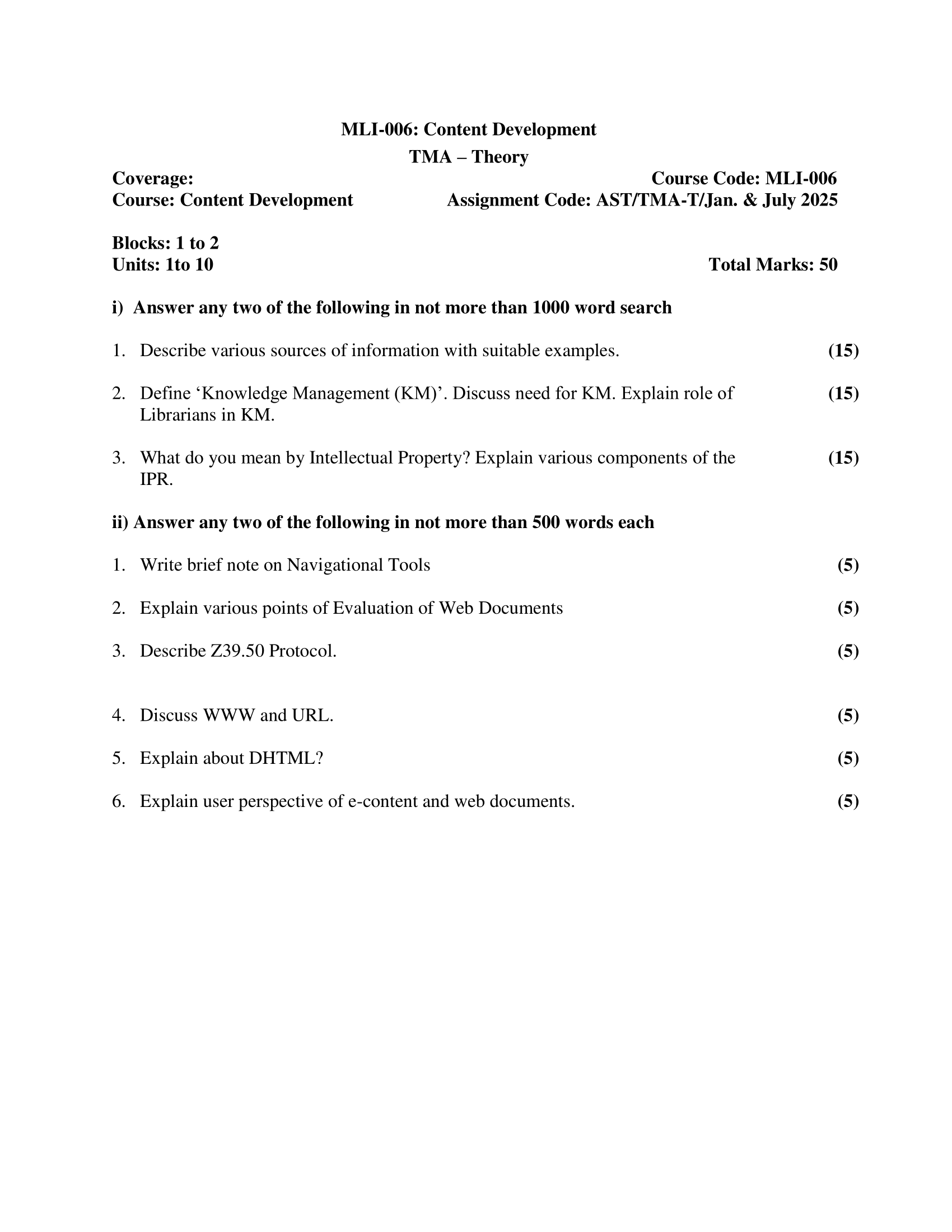 IGNOU MLI-006 SOLVED ASSIGNMENT 2025 ENGLISH MEDIUM