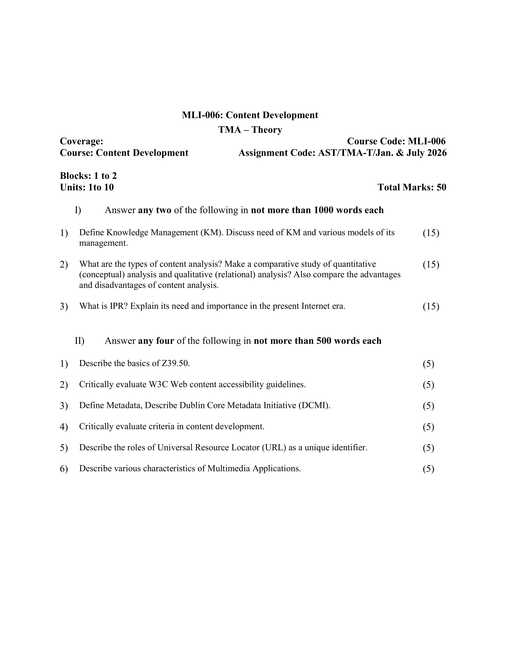 IGNOU MLI-006 SOLVED ASSIGNMENT 2026 ENGLISH MEDIUM
