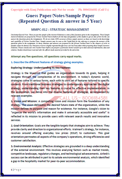 IGNOU MMPC-012 SOLVED GUESS PAPER/NOTES/SAMPLE PAPER ENGLISH MEDIUM
