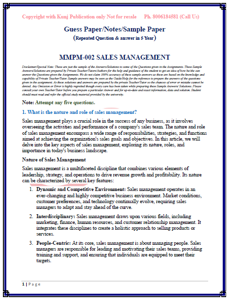 IGNOU MMPM-002 SOLVED GUESS PAPER/NOTES/SAMPLE PAPER ENGLISH MEDIUM