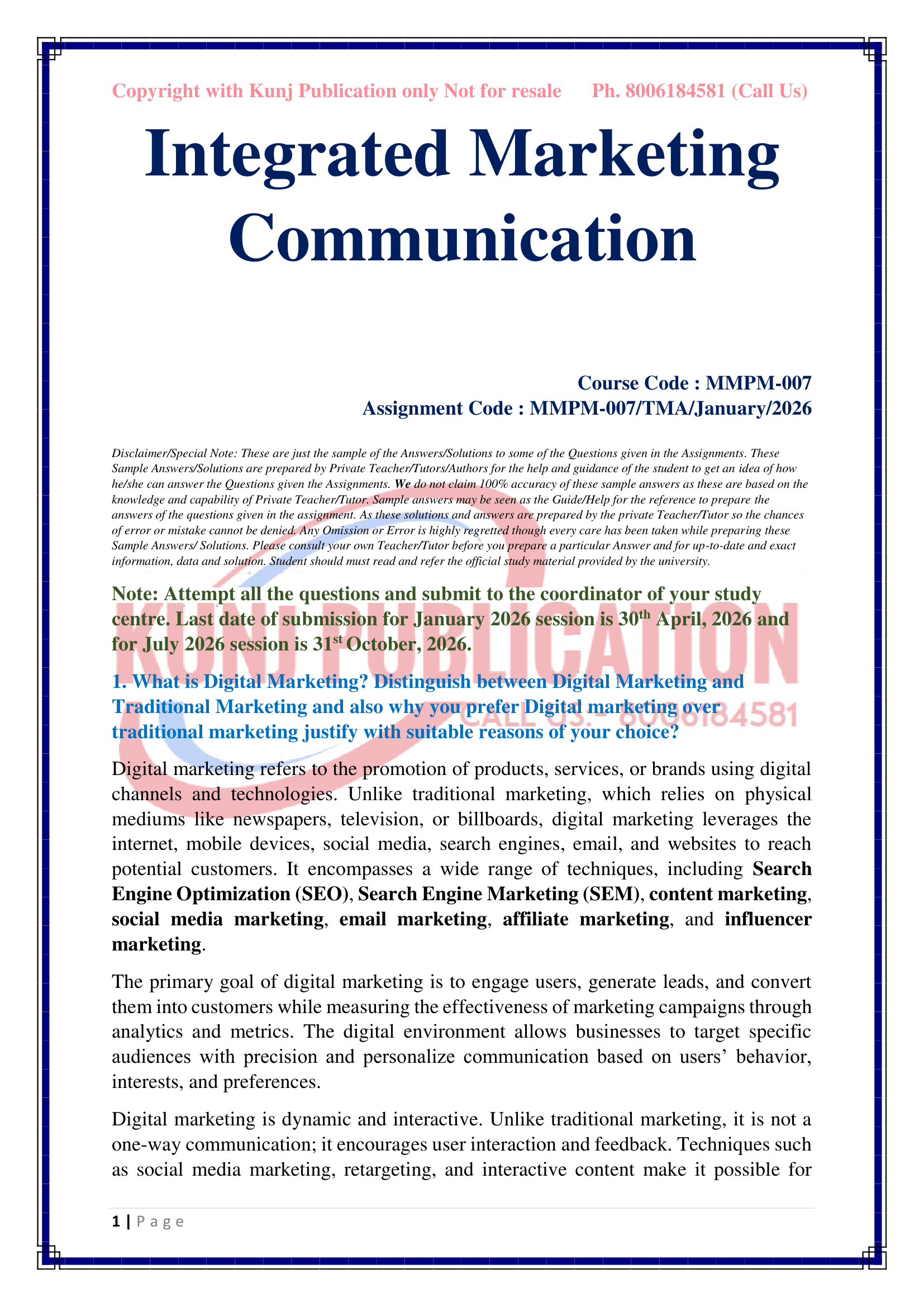 IGNOU MMPM-007 SOLVED ASSIGNMENT JAN 2026 ENGLISH MEDIUM