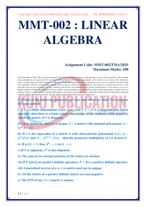 IGNOU MMT-002 SOLVED ASSIGNMENT 2025 ENGLISH MEDIUM