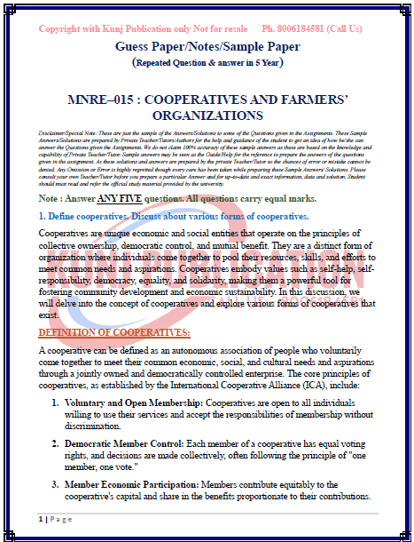 IGNOU MNRE–015 SOLVED GUESS PAPER/NOTES/SAMPLE PAPER ENGLISH MEDIUM
