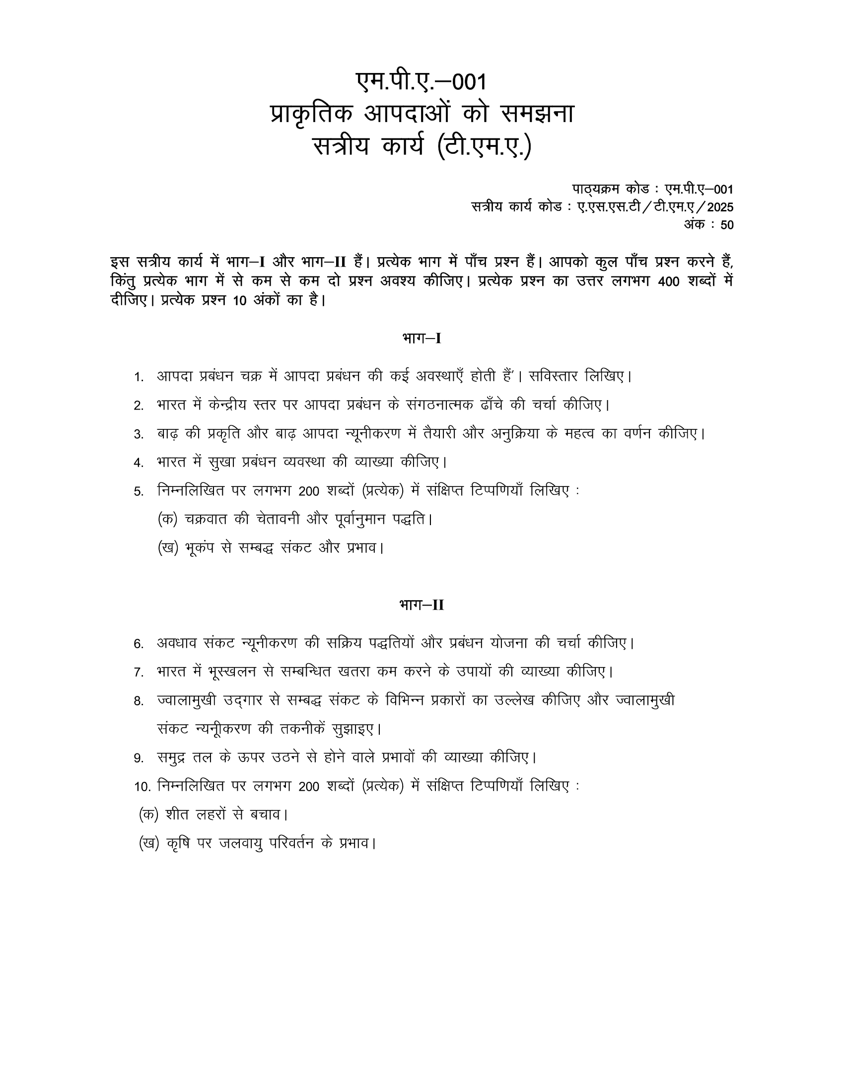 | Course | POST GRADUATE DIPLOMA IN DISASTER MANAGEMENT (PGDDM) |