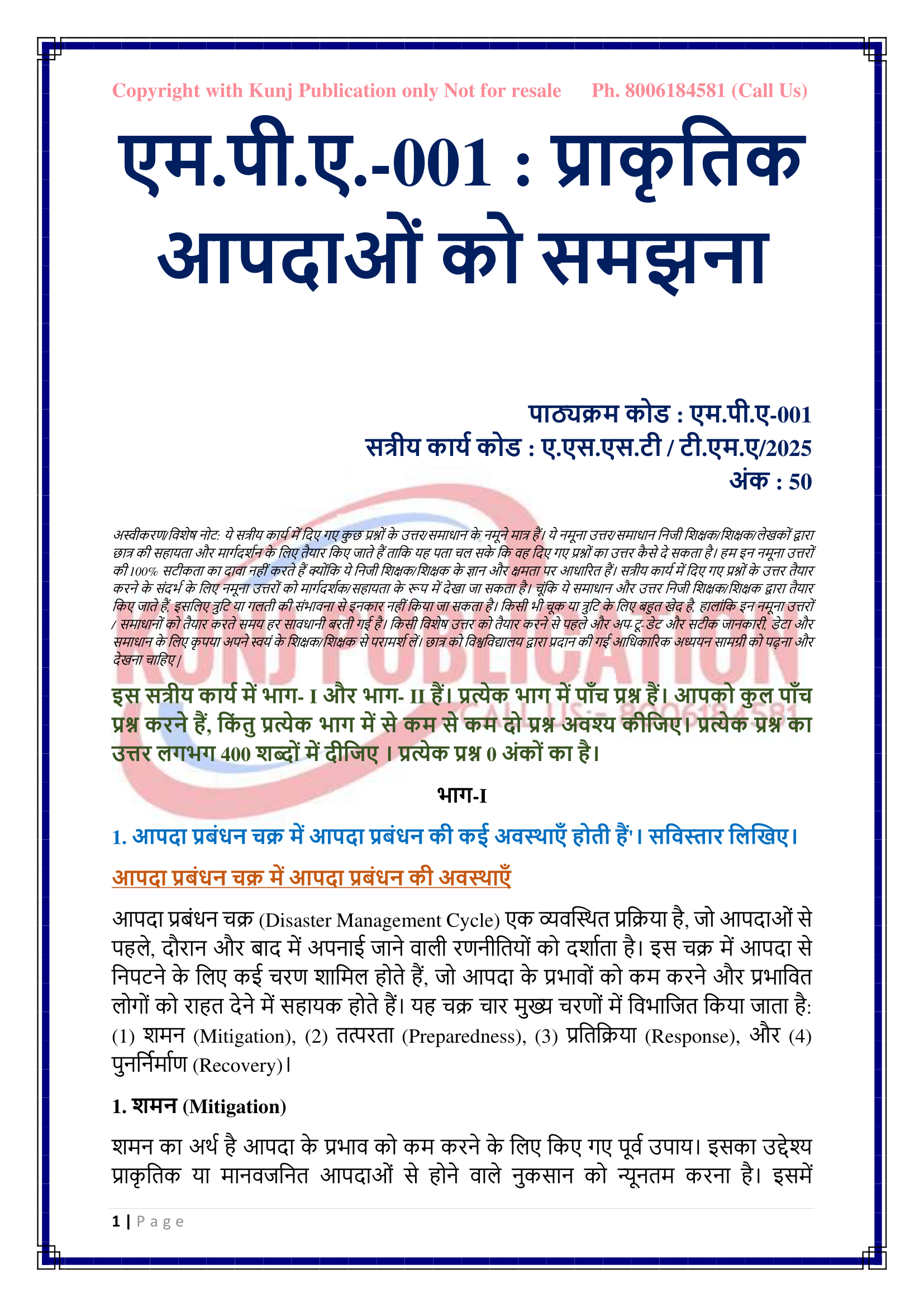 IGNOU MPA-001 SOLVED ASSIGNMENT 2025 HINDI MEDIUM