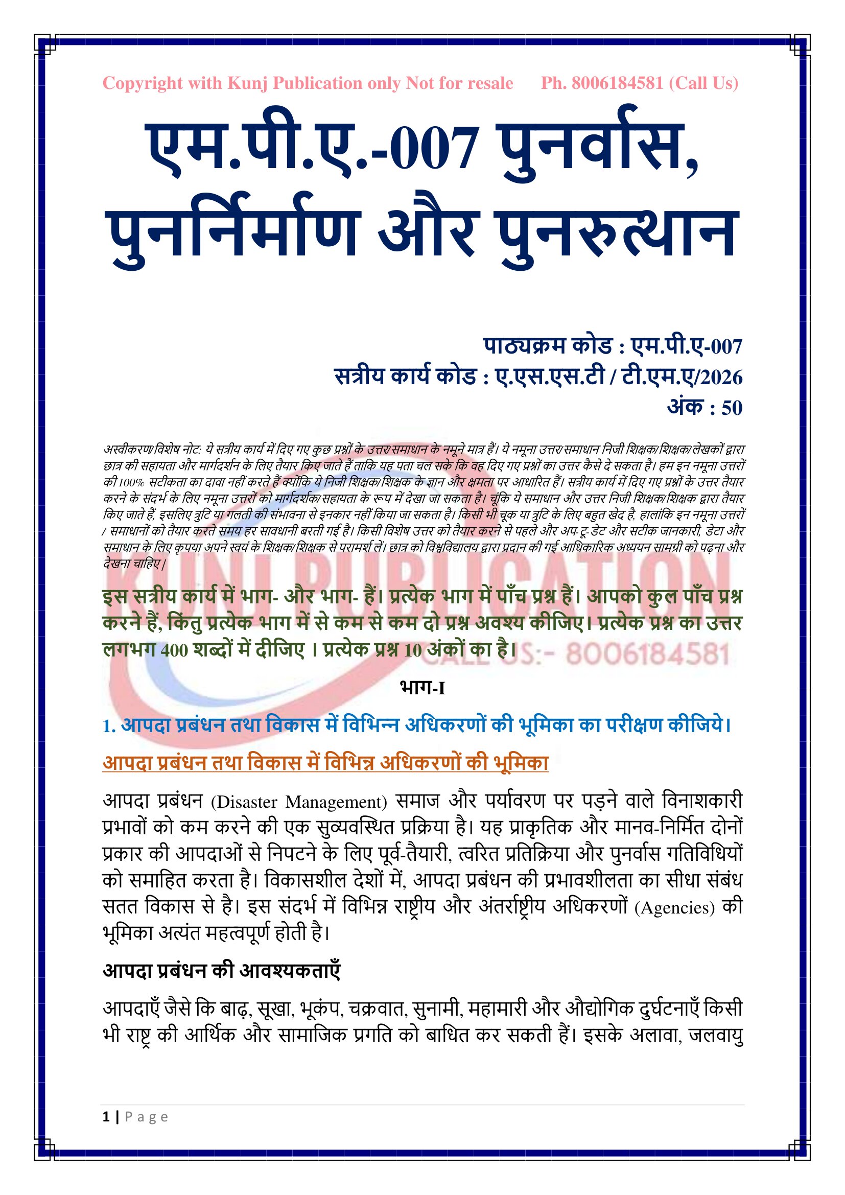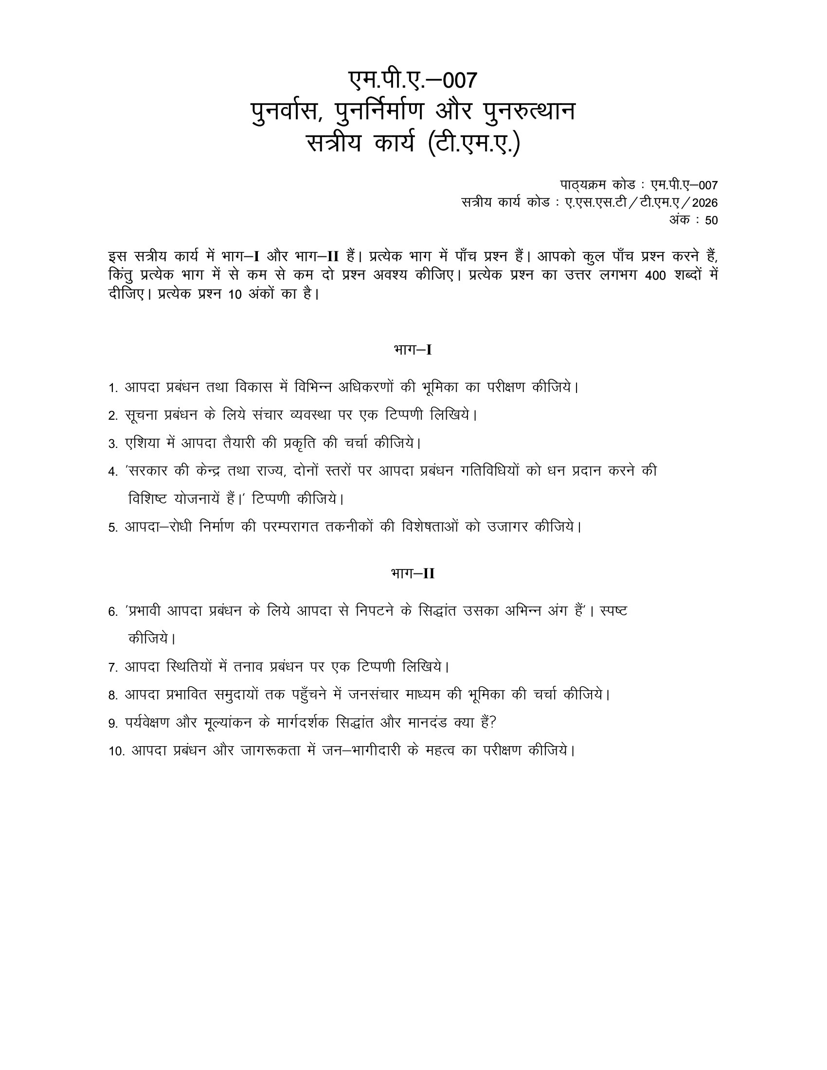 IGNOU MPA-007 SOLVED ASSIGNMENT 2026 HINDI MEDIUM