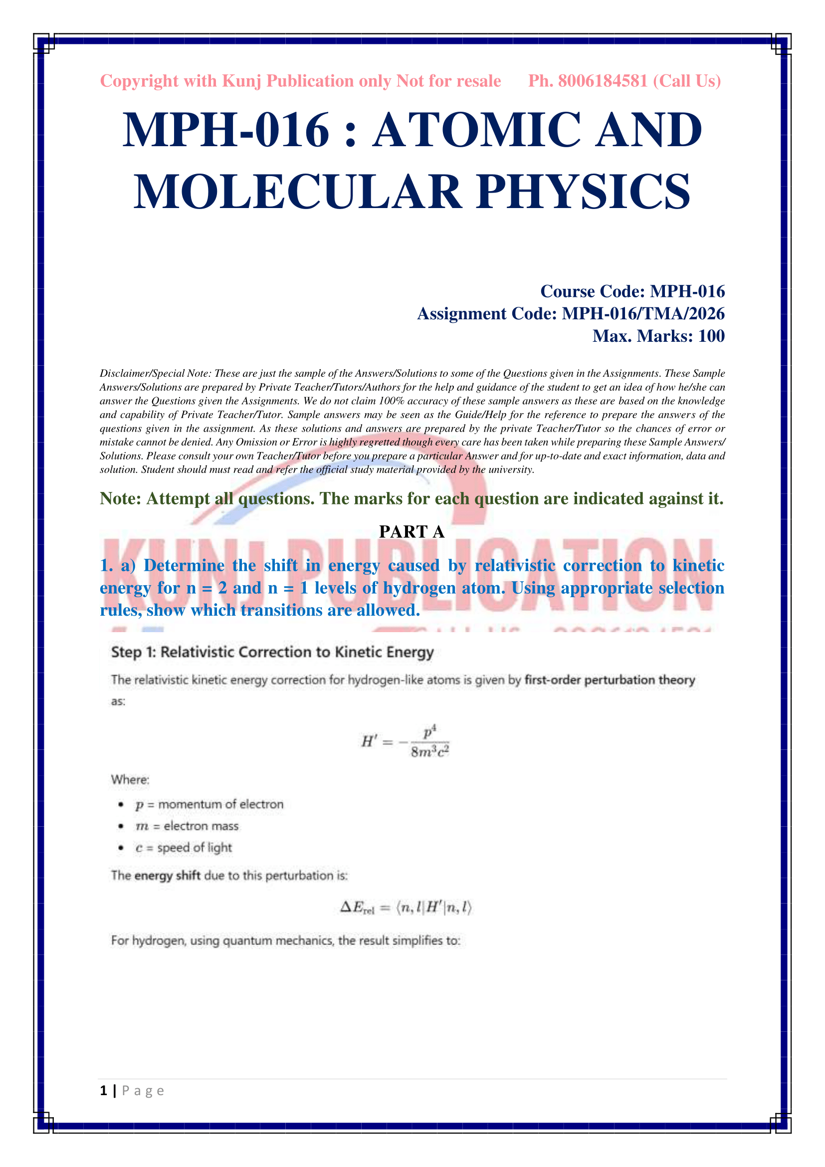 Service Type After successful payment, you will be redirected to the download page, now click on the download button and you will be able to download assignment solutions PDF file. You will also receive the download link on your mail. In addition, if you have any query or need any support please contact us on Kunjpublication20@gmail.com.