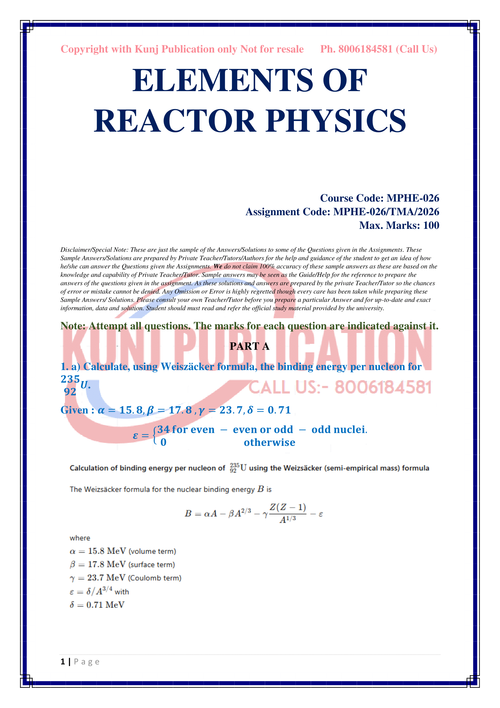 | Title | ELEMENTS OF REACTOR PHYSICS |