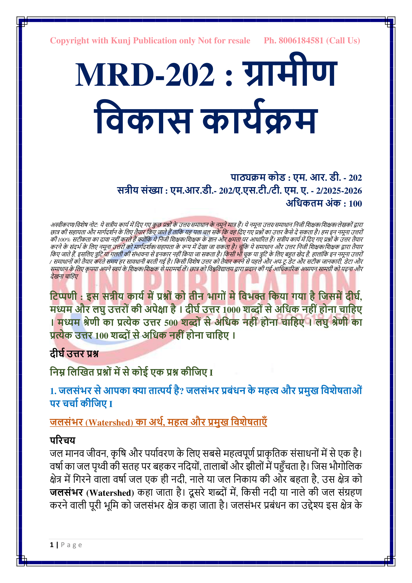 IGNOU MRD-202 SOLVED ASSIGNMENT 2025-26 HINDI MEDIUM