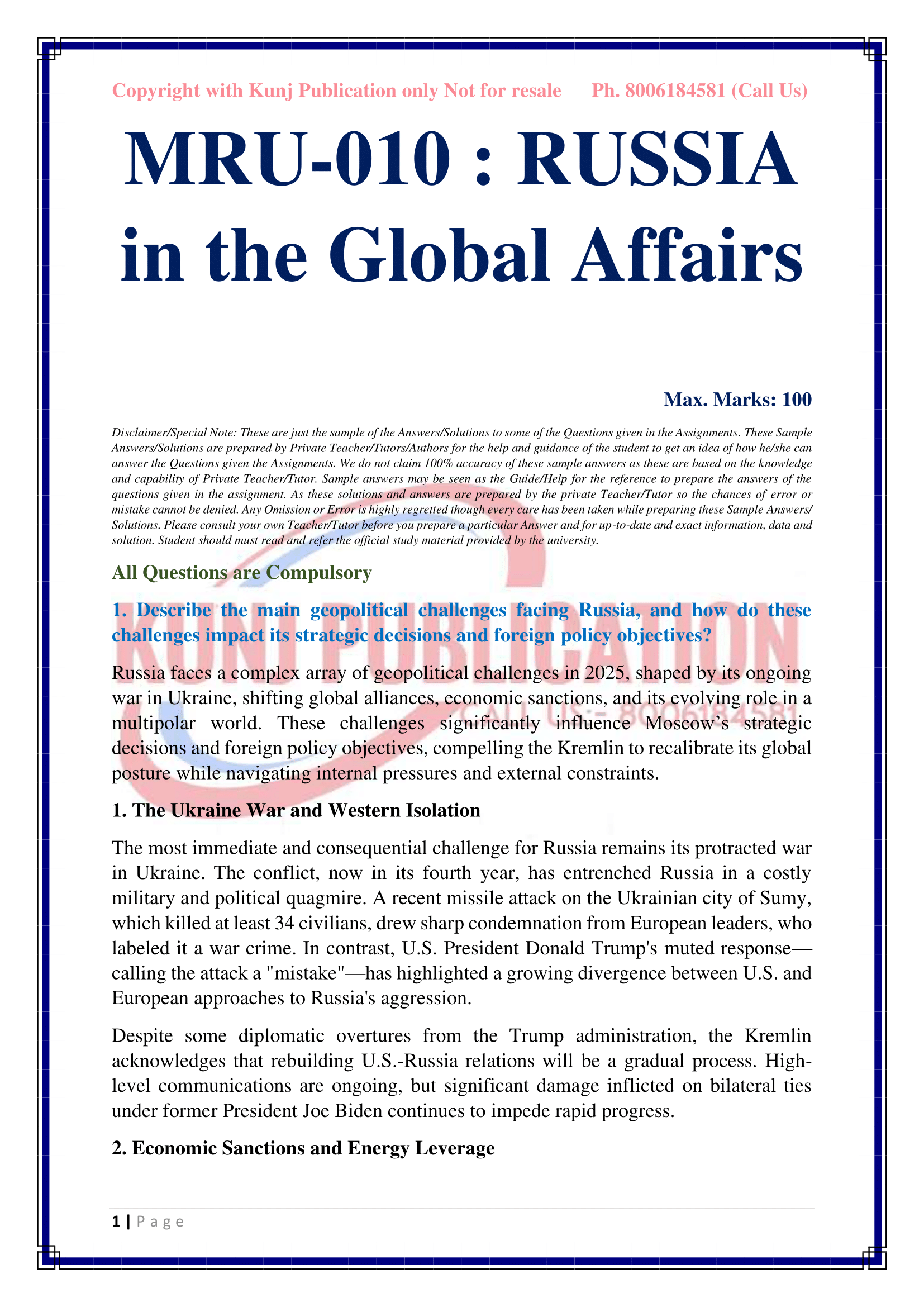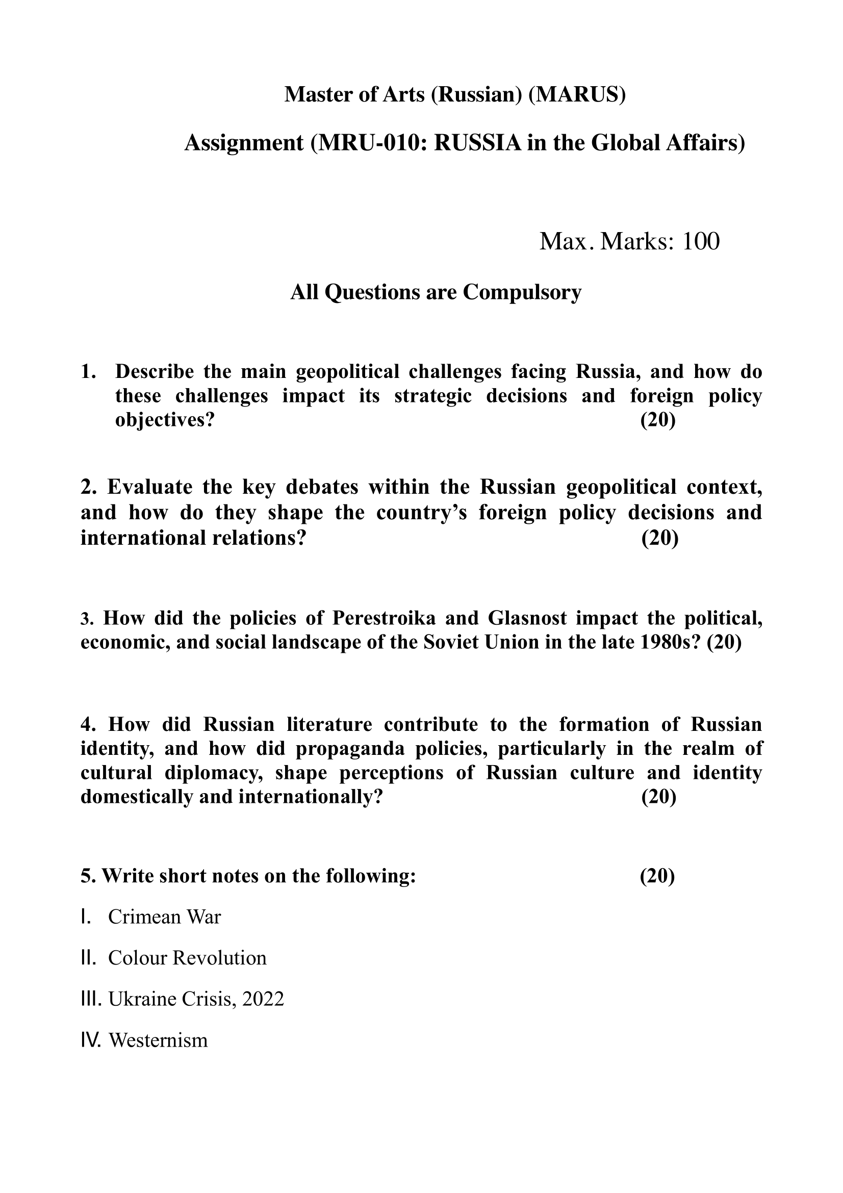 IGNOU MRU-010 SOLVED ASSIGNMENT 2025-27 RUSSIAN MEDIUM