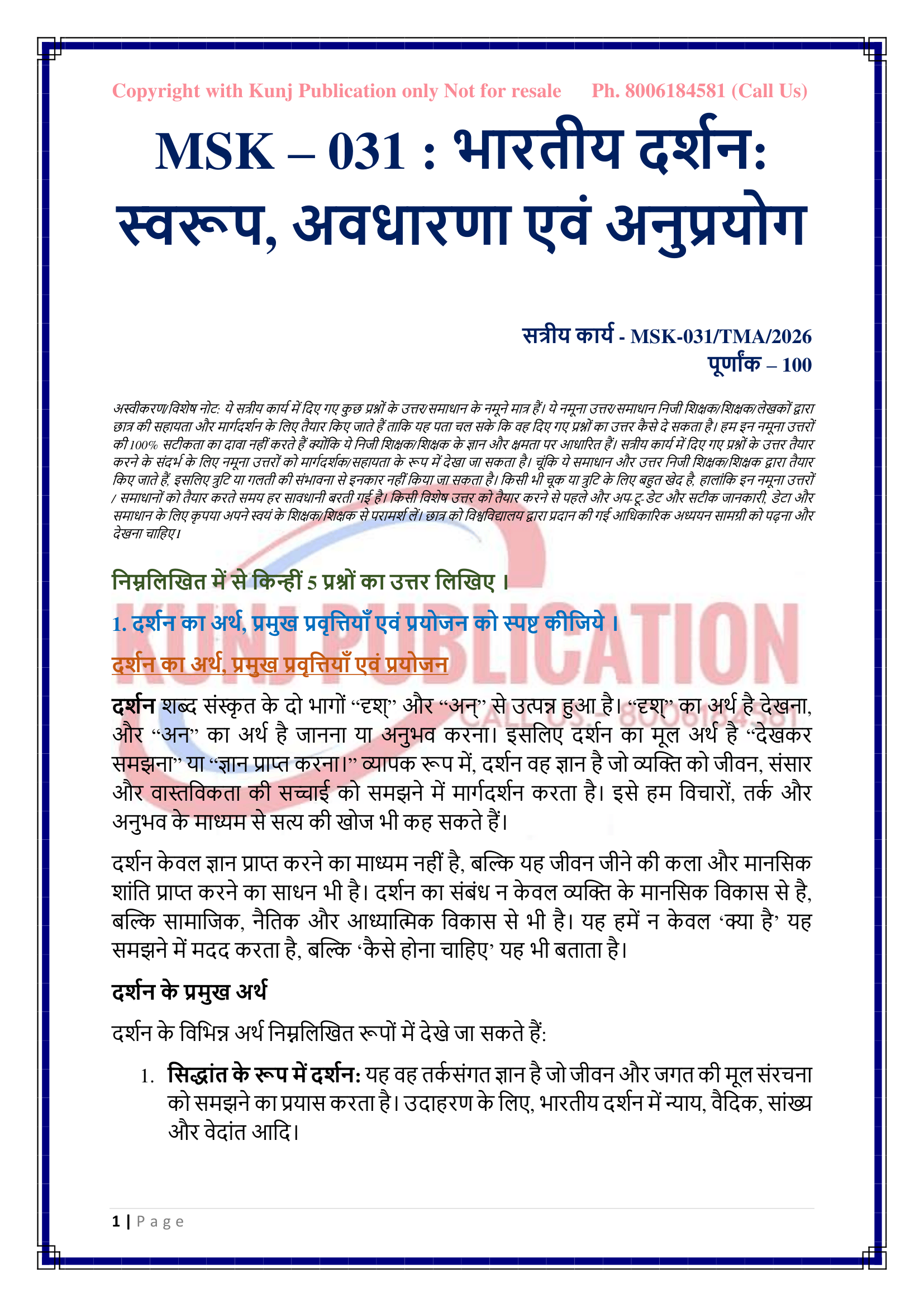 IGNOU MSK-031 SOLVED ASSIGNMENT 2026 SANSKRIT MEDIUM