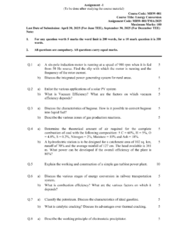 | Course | MSCRWEE Programme M.Sc (Renewable Energy and Environment) |