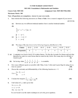 IGNOU MST-002 SOLVED ASSIGNMENT 2026 ENGLISH MEDIUM