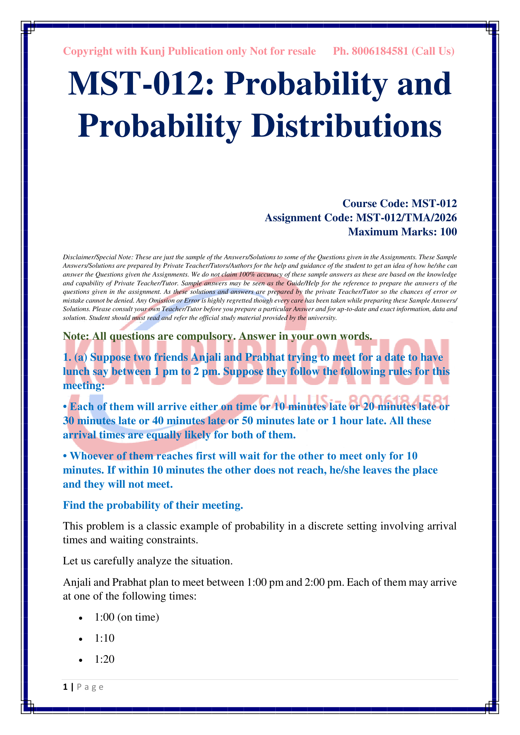 IGNOU MST-012 SOLVED ASSIGNMENT 2026 ENGLISH MEDIUM