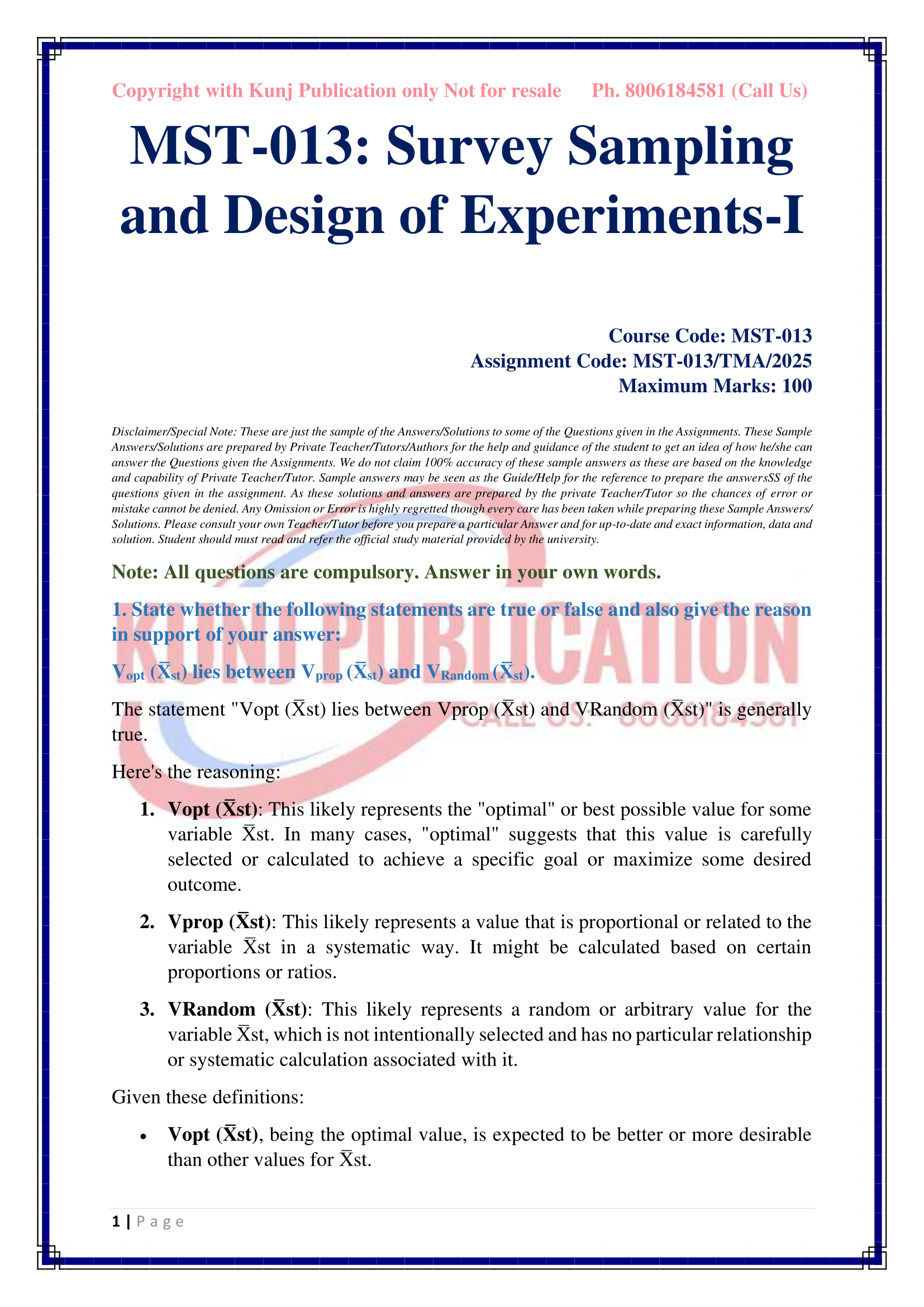 IGNOU MST-013 SOLVED ASSIGNMENT 2025