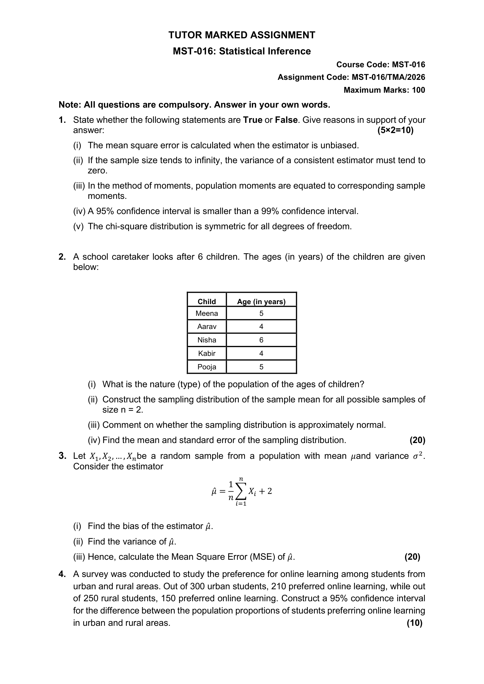 IGNOU MST-016 SOLVED ASSIGNMENT 2026 ENGLISH MEDIUM