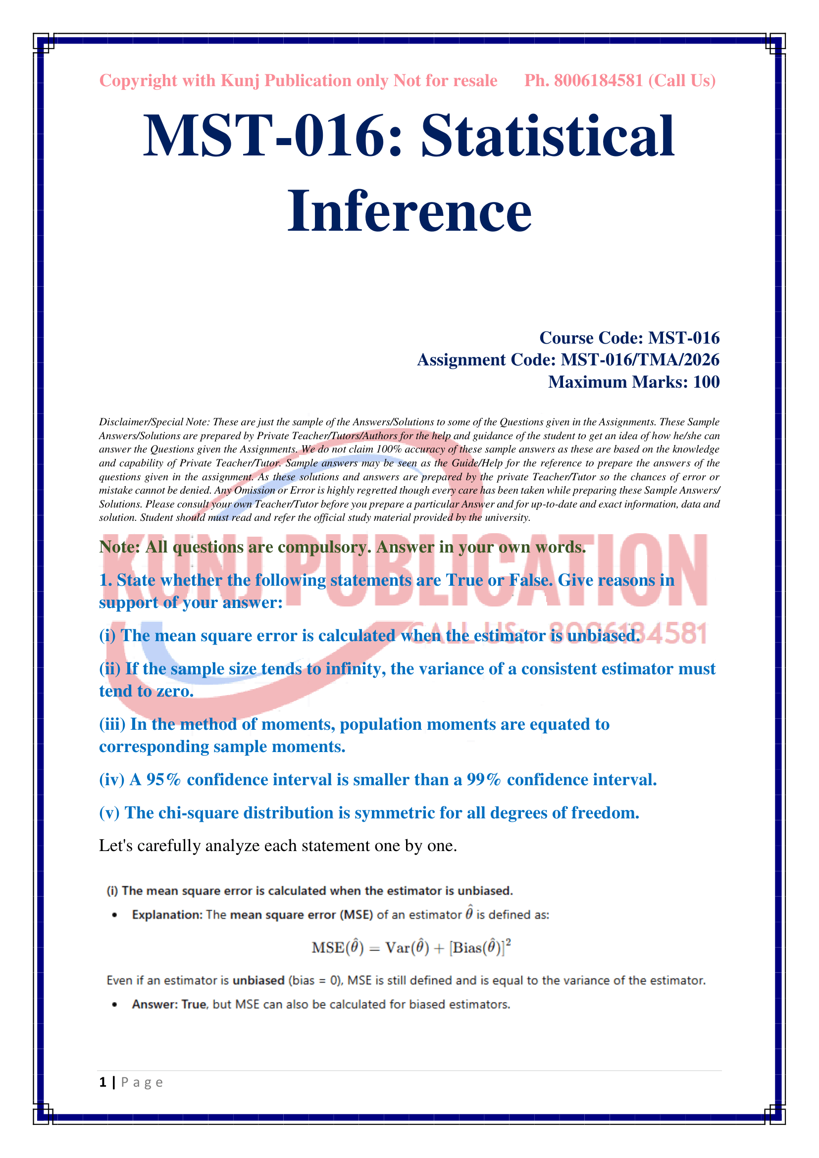 | Service Type | After successful payment, you will be redirected to the download page, now click on the download button and you will be able to download assignment solutions PDF file. You will also receive the download link on your mail. In addition, if you have any query or need any support please contact us on Kunjpublication20@gmail.com. |