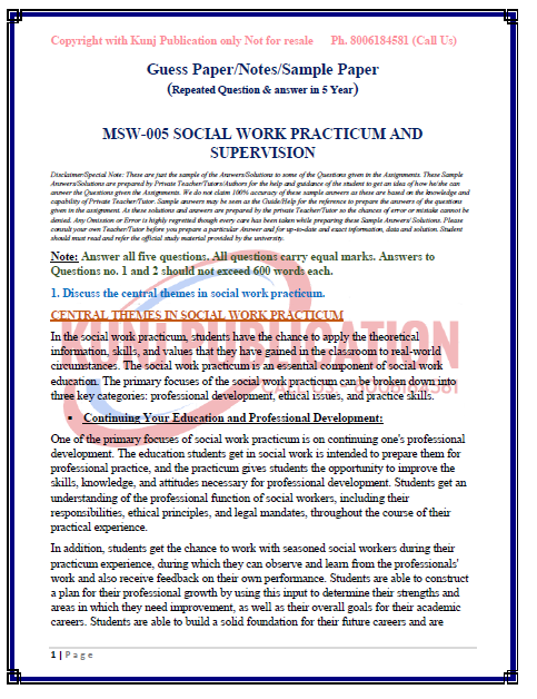 IGNOU MSW-005 SOLVED GUESS PAPER/NOTES/SAMPLE PAPER ENGLISH MEDIUM