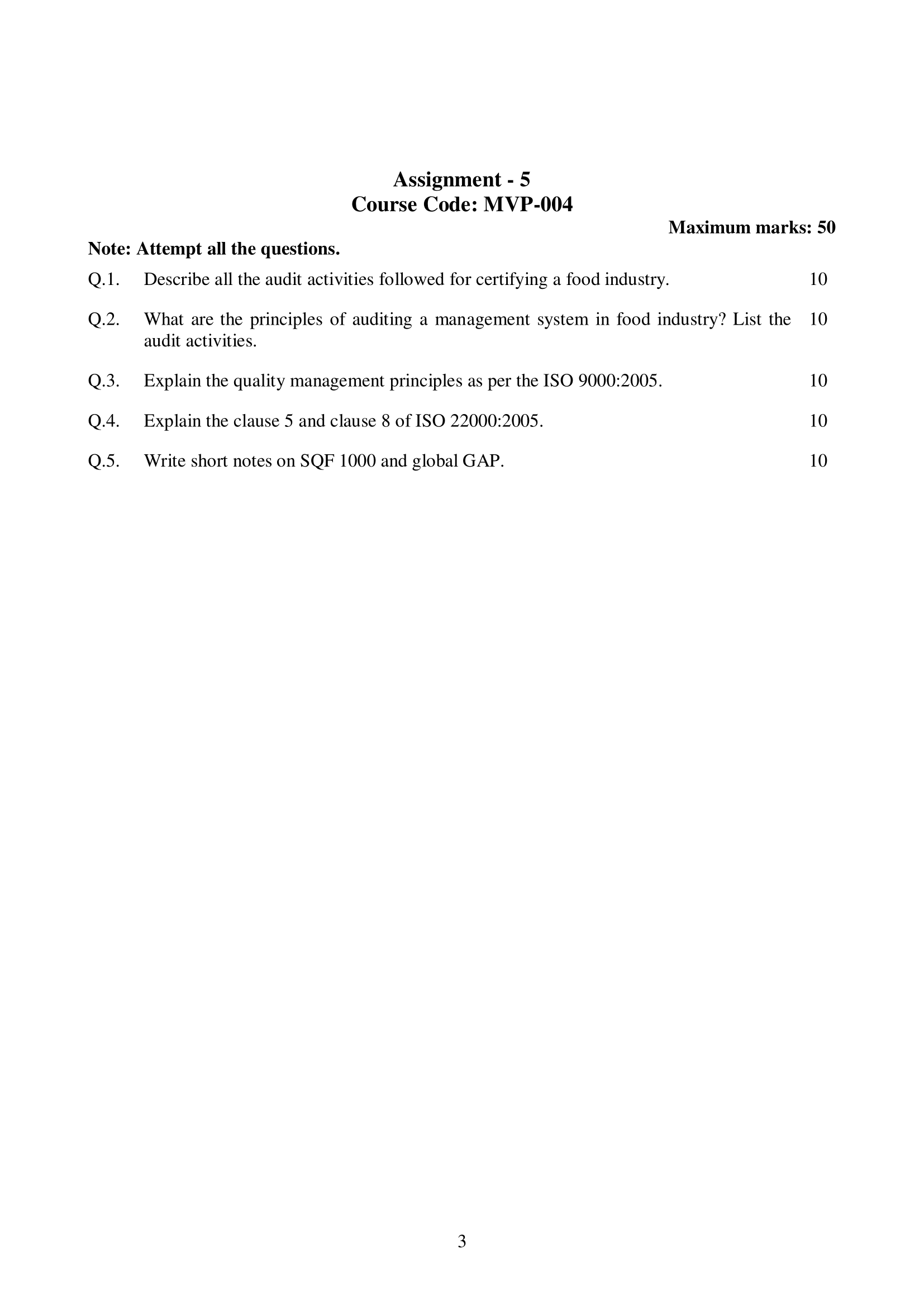 | Course | M.SC. IN FOOD SAFETY AND QUALITY MANAGEMENT (MSCFSQM) |