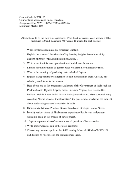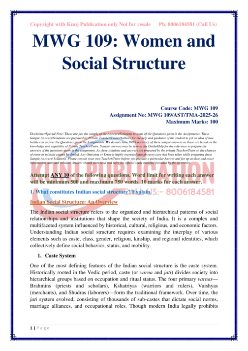 IGNOU MWG-109 SOLVED ASSIGNMENT 2025-26 ENGLISH MEDIUM