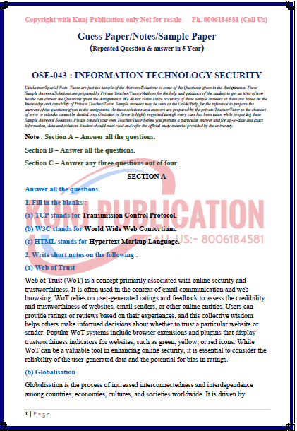 SERVICE TYPE IGNOU Solved Guess paper/Notes/Sample Paper (Soft Copy/PDF)