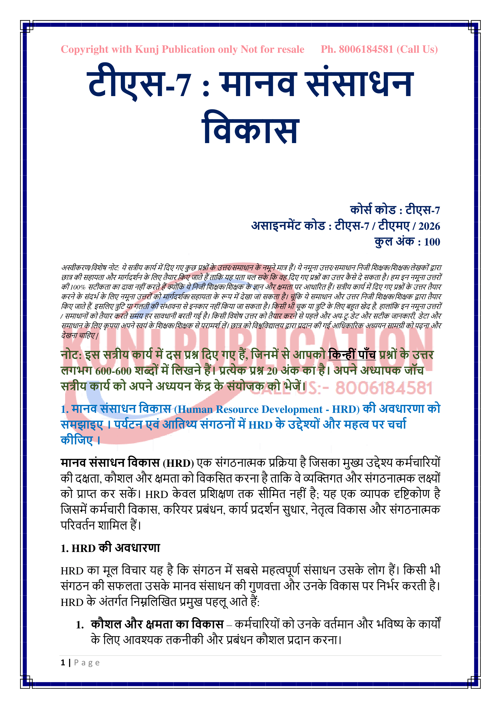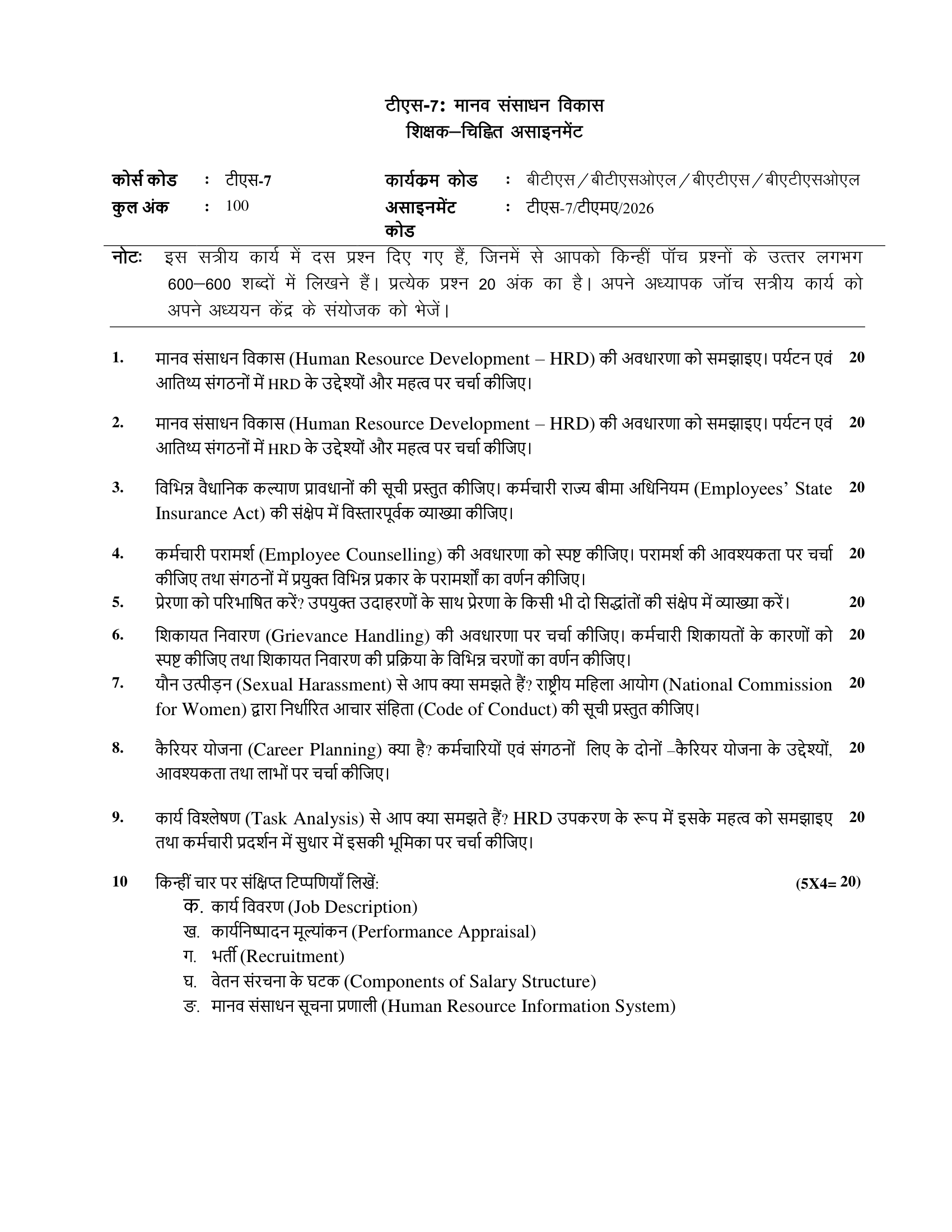 IGNOU TS-07 SOLVED ASSIGNMENT 2026 HINDI MEDIUM