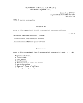 IGNOU BPCC-131 SOLVED ASSIGNMENT 2025-26 ENGLISH MEDIUM