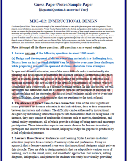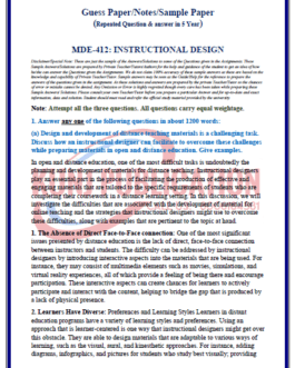 IGNOU MDE-412 GUESS PAPER/NOTES/SAMPLE PAPER ENGLISH MEDIUM