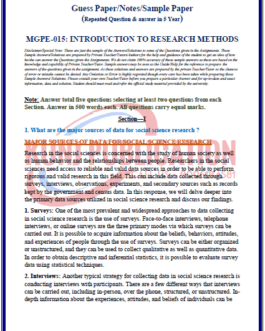IGNOU MGPE-015 GUESS PAPER/NOTES/SAMPLE PAPER ENGLISH MEDIUM